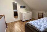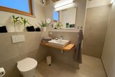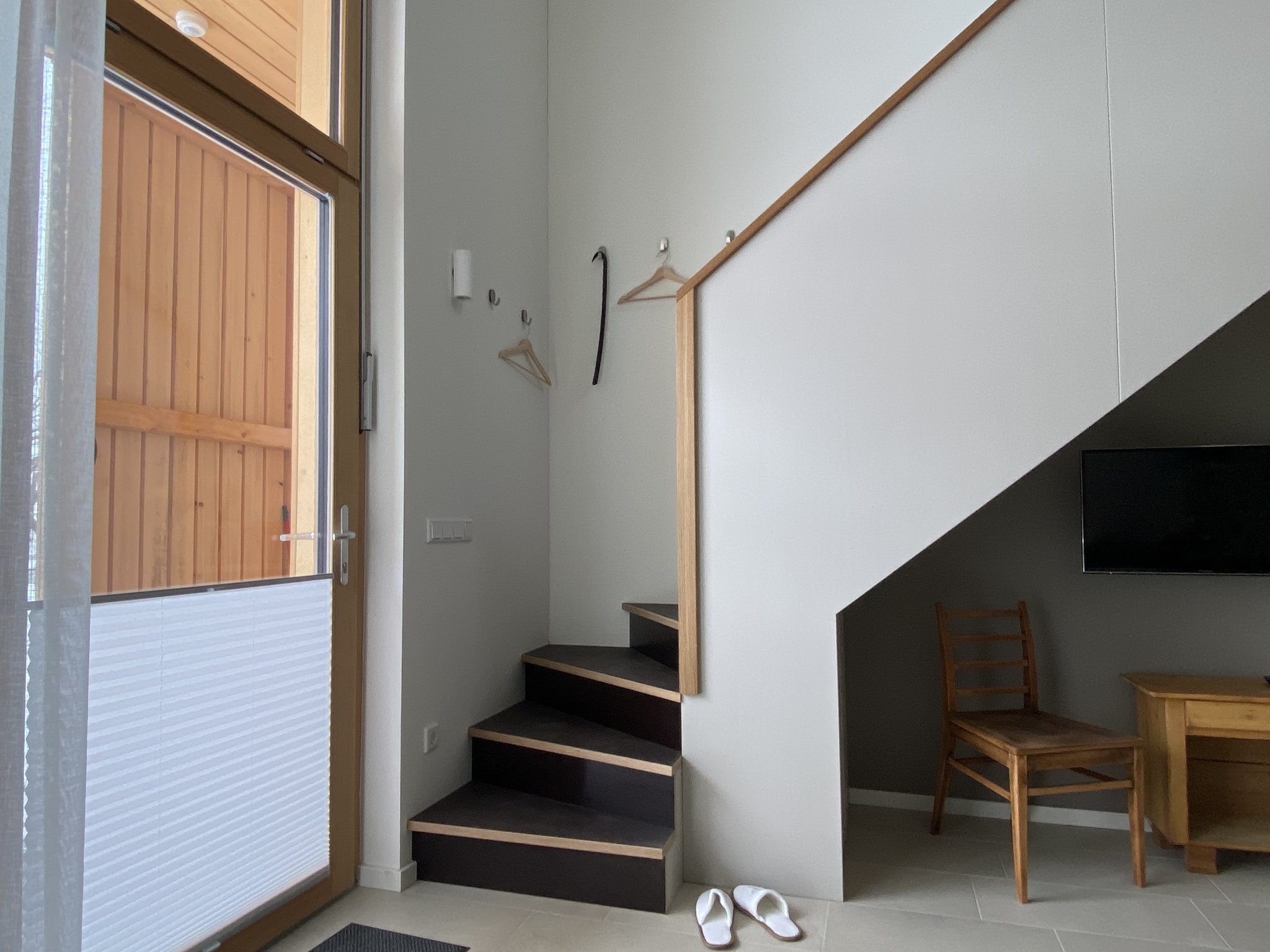 Die Ferienwohnung befindet sich in einem Holzneubau. Im Erdgeschoss befinden sich eine offene Küche, ein Esstisch mit 4 Stühlen, Sofa mit Schlaffunktion, Smart-TV und das Badezimmer mit WC und ebenerdiger Dusche.