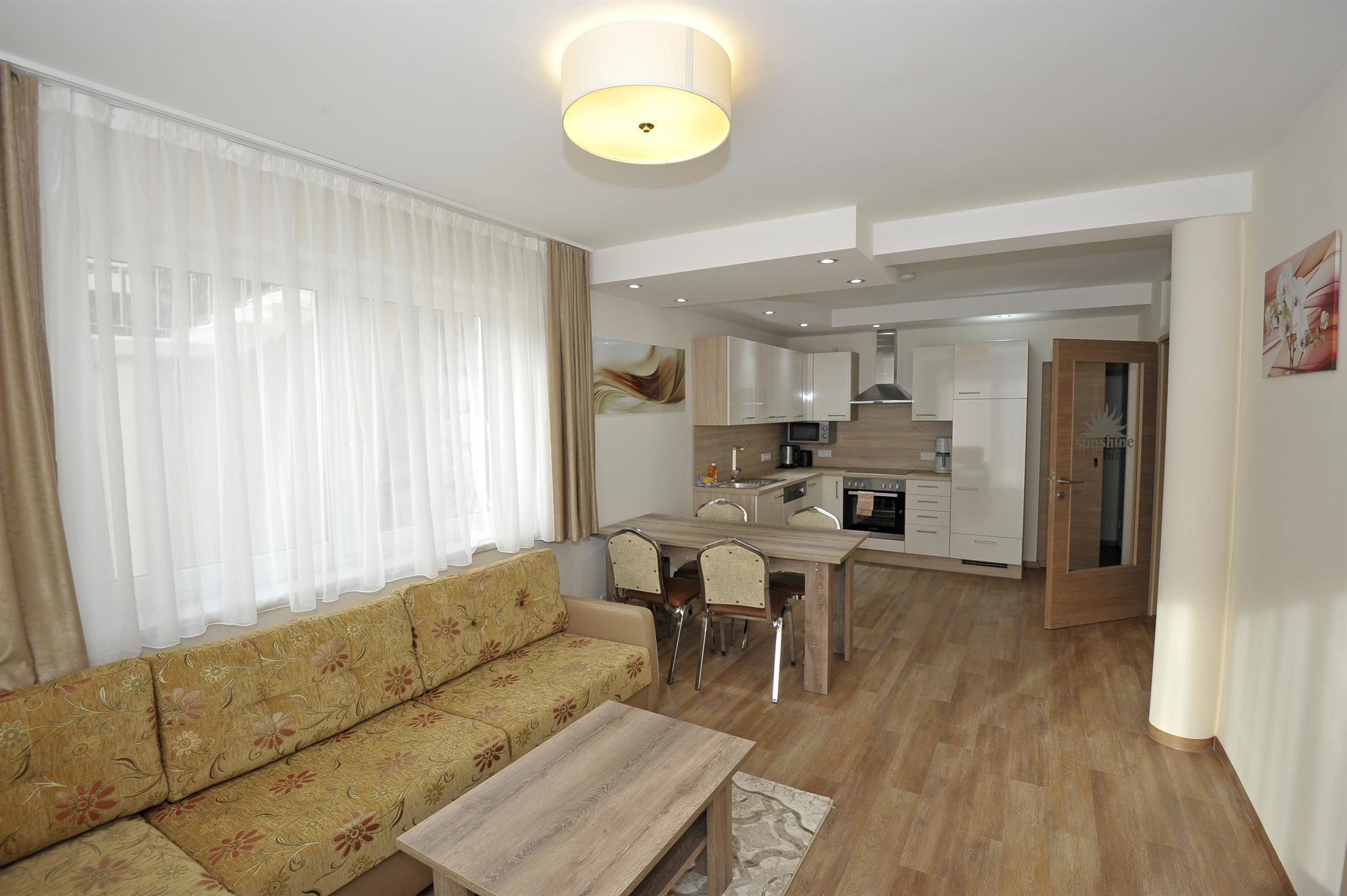 NEU ERBAUTE, MODERNE APPARTEMENTS IN RUHIGER LAGE Unser Appartementhaus Sunshine befindet sich ca 2 km von Hauptplatz entfernt . Die neu erbauten und modernen Wohnungen sind komfortabel eingerichtet mit einem offen gestalteten  Wohn- und Essbereich.