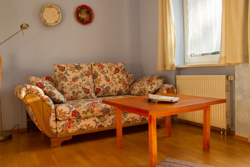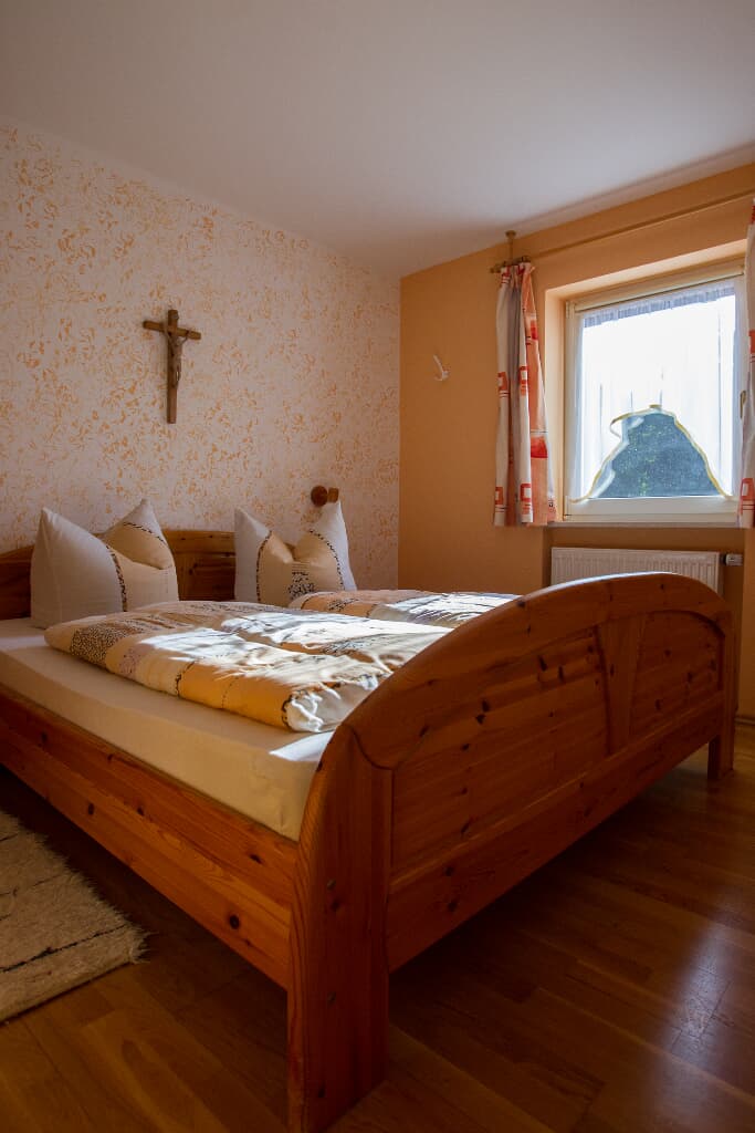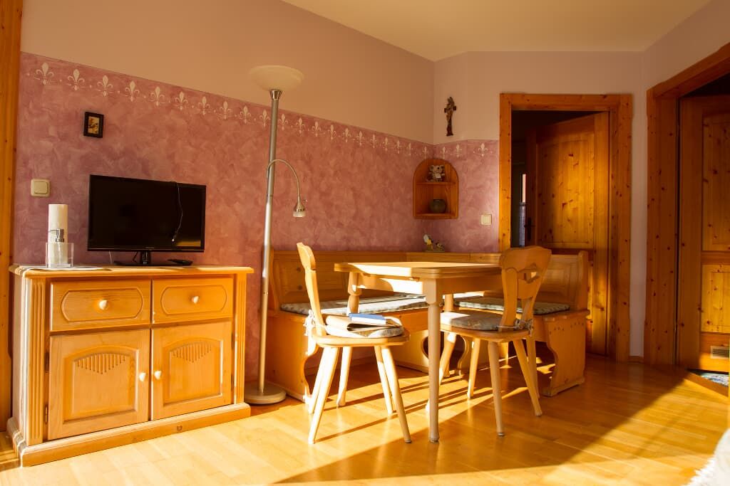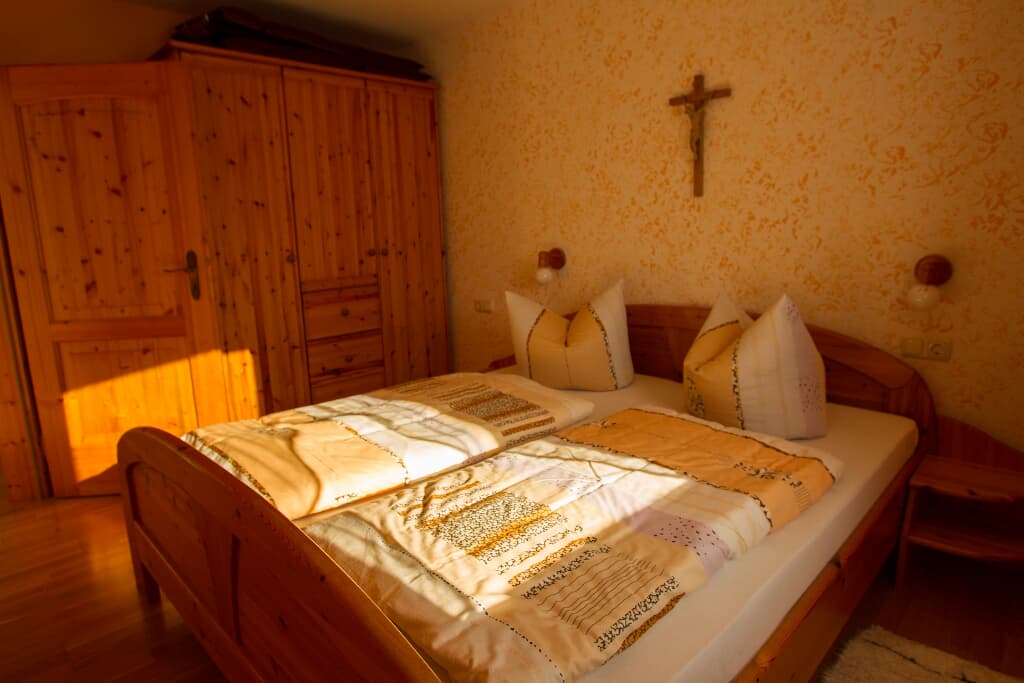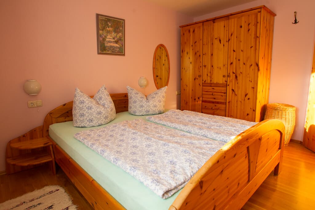 Entspannung und Ruhe inmitten der Natur In unseren Ferienwohnungen finden Sie Erholung in einem Schlafzimmer mit Doppelbett. Die Kinder schlafen im separaten Kinderzimmer mit Etagenbett. Auf Wunsch wird ein Babybett zugestellt. Der Wohn- und Essraum bietet Platz für gemütliches Beisammensein. In der voll ausgestatteten Einbauküche sind Kaffeemaschine, Wasserkessel und Kühlschrank vorhanden. Im Bad mit Dusche und WC werden die Handtücher und Duschtücher gestellt und 2x wöchentlich gewechselt. Alle Böden sind wischbar und allergikerfreundlich. Lassen Sie sich nach Ihren Ausflügen in die Couchkissen fallen und schauen die selbst gemachten Urlaubsbilder und -filme auf dem Smart-TV an oder wählen Sie Ihr individuelles Programm aus. Unser Haus verfügt selbstverständlich über einen WLAN-Anschluss. Den Urlaubstag können Sie auf dem großzügigen Balkon in der Abendsonne ausklingen lassen. Genießen Sie die Ruhe in Waldnähe und ohne Durchgangsverkehr.