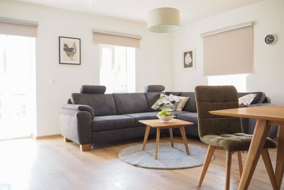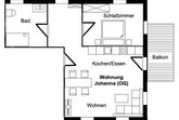 Die moderne Ferienwohnung Johanna liegt im Obergeschoß des Hauses und bietet mit 55m² Wohnfläche ausreichend Platz für bis zu 3 Personen. Der großzügige Wohn- und Essbereich mit Küche hat einen direkten Zugang zum Südbalkon. Im einladenden Wohnbereich befindet sich eine ausziehbare Couch mit Schlaffunktion (Liegefläche 120cm x 200cm) sowie ein Fernseher.