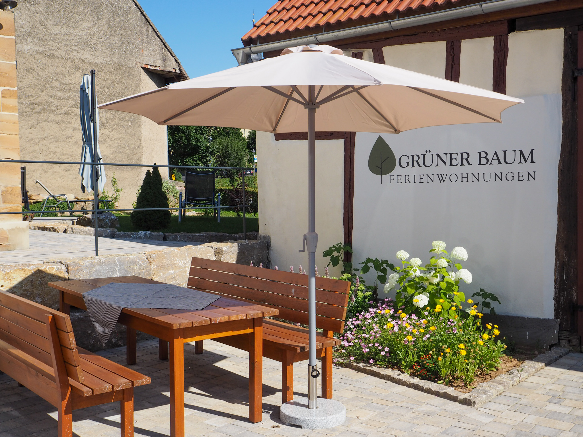 Entspannen Sie nach Ihrer Wanderung im Weinparadies auf der Terrasse oder dem Balkon bei einem Glas Frankenwein und genießen Sie die idyllische Ruhe.