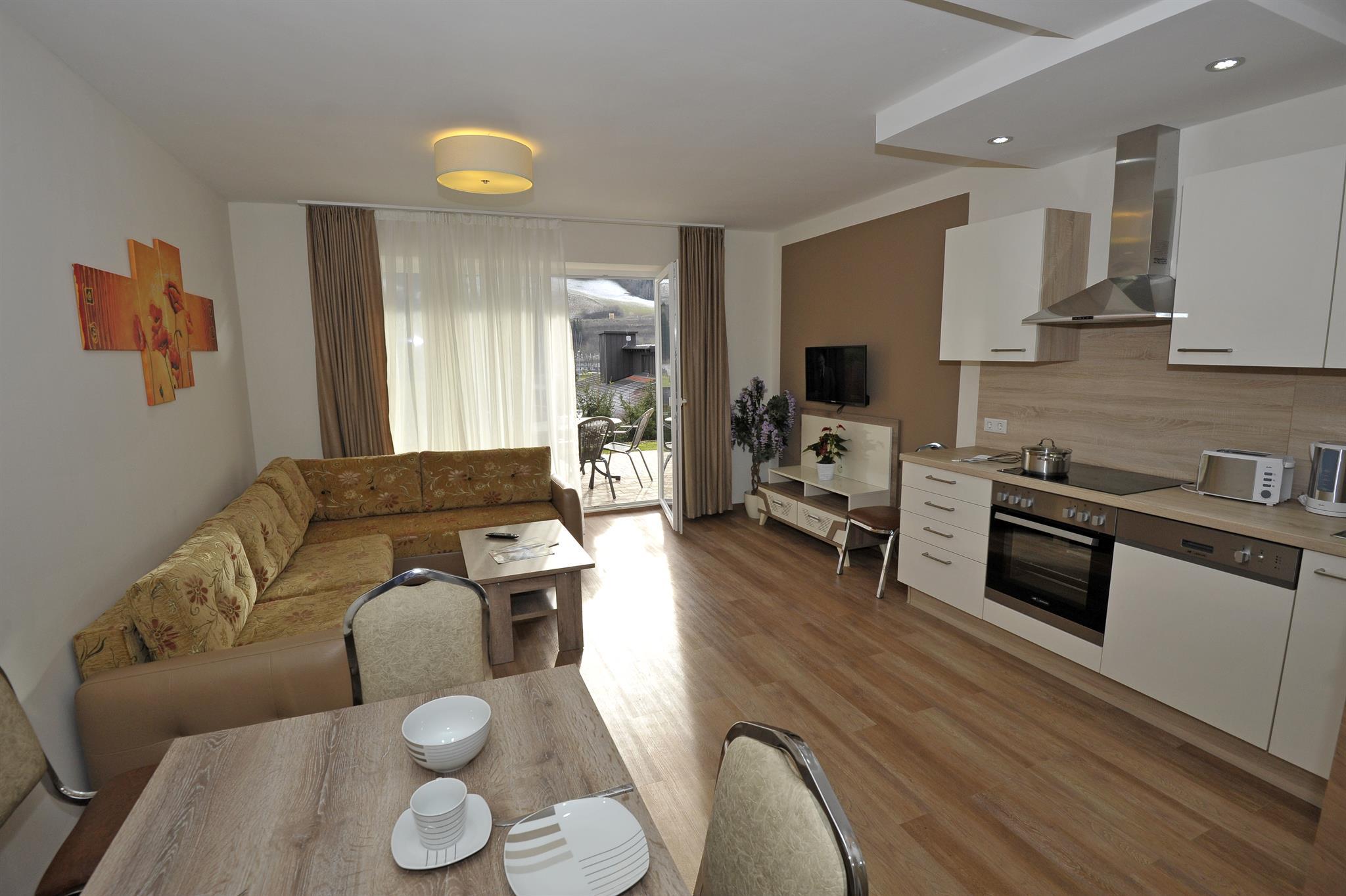 NEU ERBAUTE, MODERNE APPARTEMENTS IN RUHIGER LAGE Unser Appartementhaus Sunshine befindet sich ca 2 km von Hauptplatz entfernt . Die neu erbauten und modernen Wohnungen sind komfortabel eingerichtet mit einem offen gestalteten Wohn- und Essbereich.