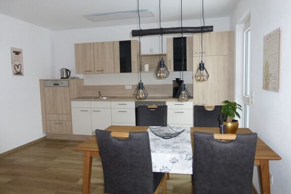 Die Wohnung verfügt über zwei Schlafzimmer. Ein Schlafzimmer ist mit einem Doppelbett ausgestattet, das zweite Schlafzimmer mit einem Etagenbett. Im kombinierten Wohn- und Kochbereich steht für die fünfte und sechste Person ein komfortables Schlafsofa zur Verfügung. Zudem befindet sich im Wohnzimmer ein TV und eine Essecke. Die Küche ist komplett ausgestattet (Herd, Backofen, Kühlschrank, Gefrierfach, Geschirrspüler, Kaffeemaschine, Wasserkocher, Geschirr, Besteck, Küchenwäsche und viele weitere Küchenutensilien). Das neue Tageslichtbadezimmer ist mit Dusche, Handtuchtrockner, Bidet und WC ausgestattet.