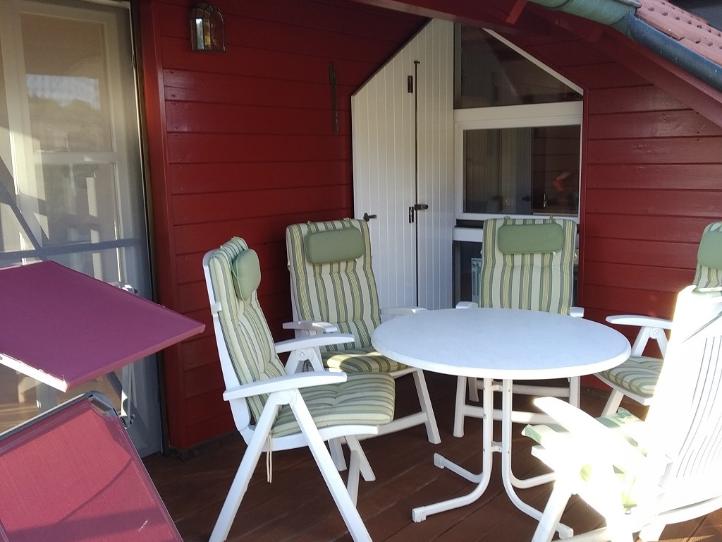 Wenn Sie sich gerne draußen aufhalten bietet unser großer, teils überdachter Balkon mit Sitzgruppe für 5 Personen, 2 Liegen und Sonnenschirm die Möglichkeit dazu.