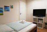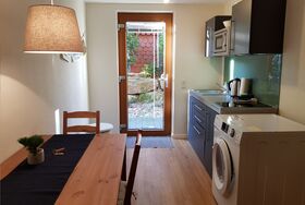 Die Wohnung wurde mit viel Liebe zum Detail eingerichtet. Die kleine, voll ausgestattete Küche bietet alles, was Sie für die Zubereitung Ihrer Mahlzeiten benötigen - incl. Mikrowelle mit Grillfunktion, Kaffeemaschiene und Spülmaschine. Zum Reinigen Ihrer Kleidung steht ein Waschtrockner zur Verfügung. In dem modernen, geschmackvoll eingerichteten Bad fühlt man sich auf Anhieb wohl. Ein Fernseher im Schlafzimmer, Wlan und einen Parkplatz auf dem Grundstück gehören ebefalls dazu.