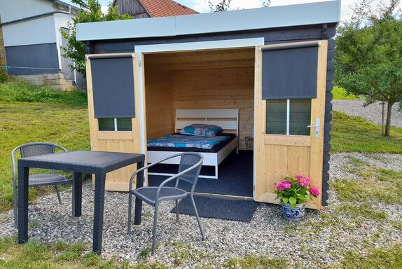 Unsere Campinghütte Felix verfügt über ein Bett 1,40 x 2,00 und einen 3 (möglichen) schlafplatz als zustellbett 90 x 2,00. In dieser 10 qm großen Hütte befindet sich ein bequemes Doppelbett. Bei bedarf ist noch ein Beistellbett möglich. Sie bietet somit Platz für bis zu 3 Personen. Ebenfalls gibt es Licht, Strom, W-LAN, Fensterrollos zum Abdunkeln, Tisch und Stühle, auch im Außenbereich befindet sich ein Tisch mit Stühlen der zum Verweilen einlädt. Die Übernachtung in unseren Campinghütten beinhaltet Bettwäsche, Beleuchtung, Stromanschluss und natürlich die Nutzung unserer Sanitäreinrichtungen.