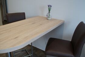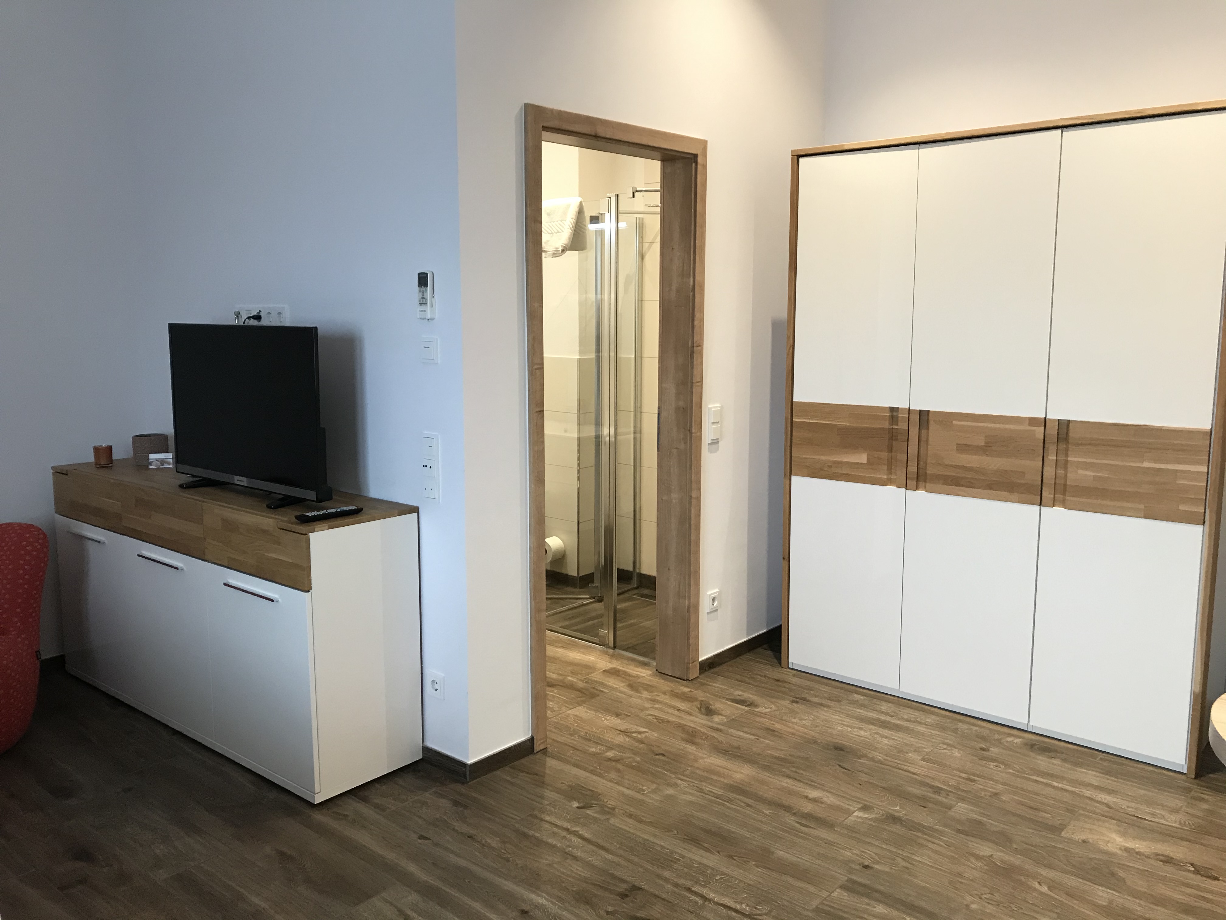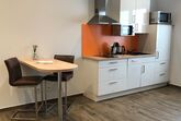 Dieses Einraum-Appartement (für 1-2 Personen) ist eine voll ausgestattete, moderne Wohnung auf 34 m² mit komplett eingerichteter Küchenzeile, einem Essplatz, Boxspringbett, kostenfreiem W-Lan, Flatscreen-TVs, Klimaanlage, ist über Aufzug erreichbar und hat einen kostenfreien Parkplatz in Fußnähe.