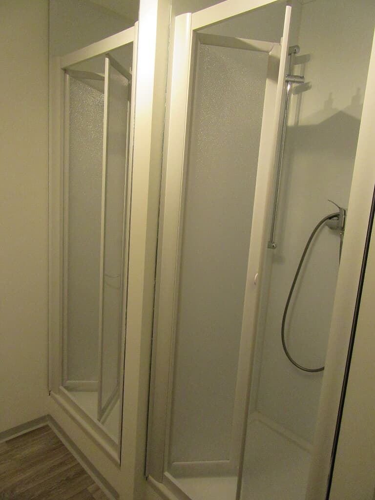 Es sind 2 Duschen und ein separates WC vorhanden.