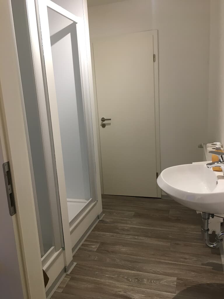 Das Zimmer teilt sich ein Gemeinschaftsbad am Flur je nach Buchung nutzen max. 3 Personen zusammen das Bad.