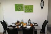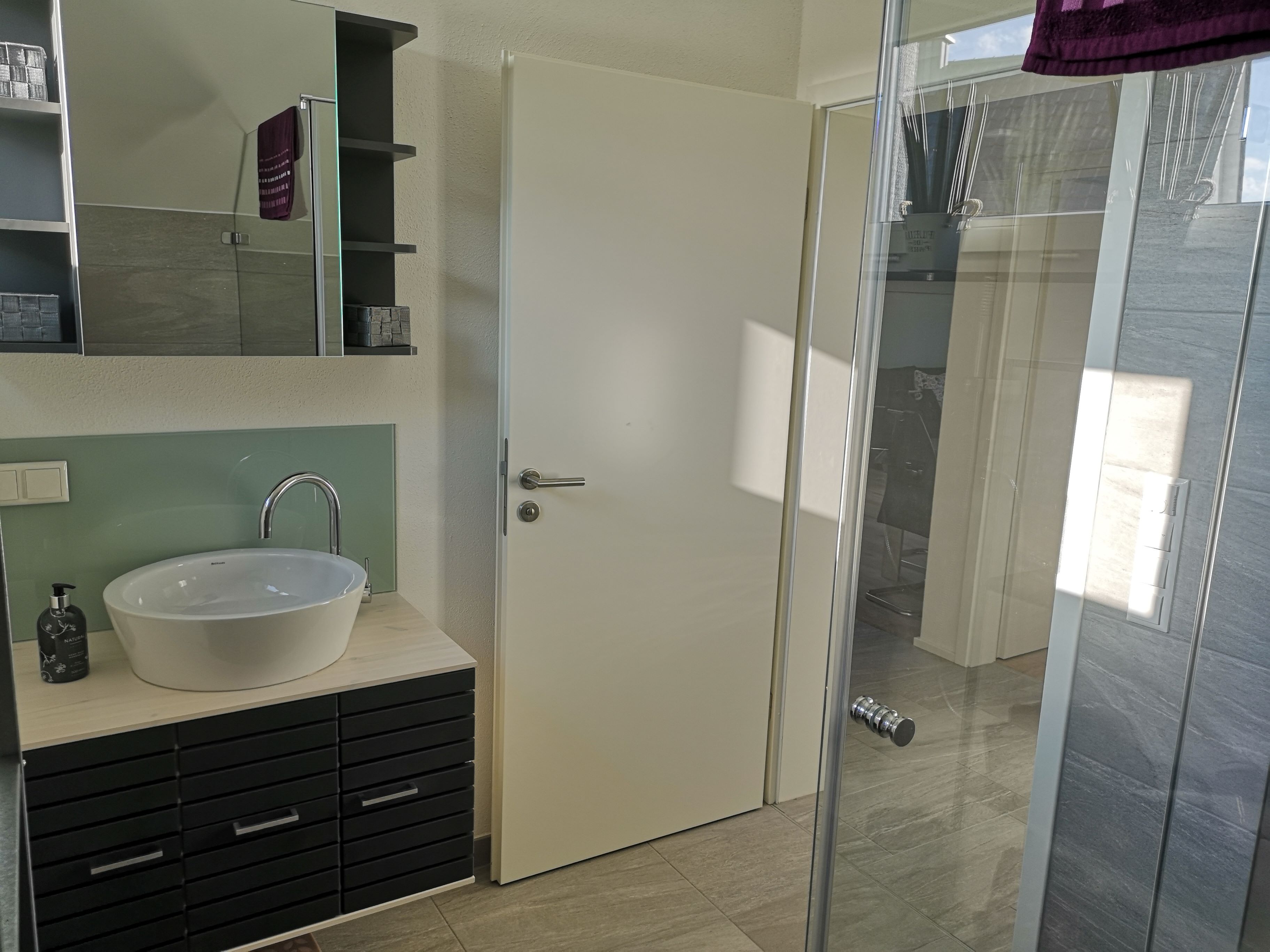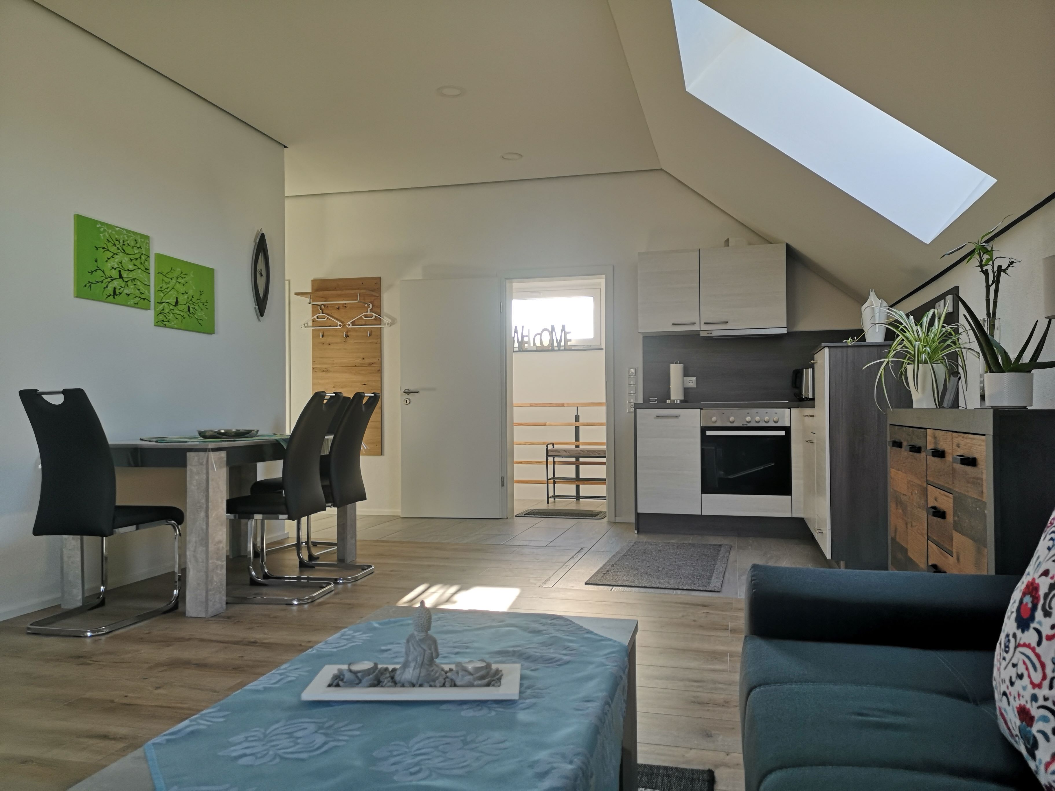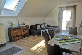 Die Ferienwohnung mit 65m² befindet sich im ersten Stock und bietet Platz für 1-4 Personen (Monteure max. 2 Personen) Das gemütliche Wohnzimmer mit Schlafcouch, Kuscheldecken und eine Wärmflasche lädt zum Verweilen ein. Die komplett neu ausgestattete Küche mit Geschirrspüler, Kühlschrank, Herd, Mikrowelle, Wasserkocher, Kaffeemaschine, Eierkocher, Toaster, Mixstab lässt keine Wünsche offen. Das Ferienhaus verfügt über 2 Schlafzimmer mit Doppelbetten 180cm x 200cm und 160cm x 200cm. Ein Kinderreisebett und ein Hochstuhl kann auf Wunsch gerne zur Verfügung gestellt werden. Das hochwertig, modern eingerichtete Bad hat eine begehbare Glasdusche mit Rainshower, WC, Föhn und einem Designwaschtisch mit Spiegelschrank. Abstellmöglichkeiten für Waschutensilien sind vorhanden. Handtücher und Bettwäsche werden zur Verfügung gestellt. Bücher, Zeitschriften, Rätselhefte und CDs laden zur Entspannung ein. Vor allem im Sommer kann der Außenbereich mit Sitzmöglichkeiten genutzt werden. Ein Unterstellplatz für Fahrräder ist vorhanden. Bitte beachten Sie, das keine Haustiere erlaubt sind. Das WLAN und der Parkplatz vor dem Haus sind kostenfrei. Nichtraucherhaus.