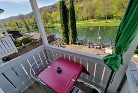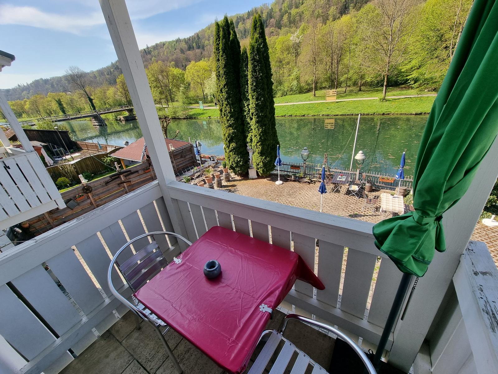 Balkon in traumhafter Lage zwischen Fluss und Felswand. Unsere drei