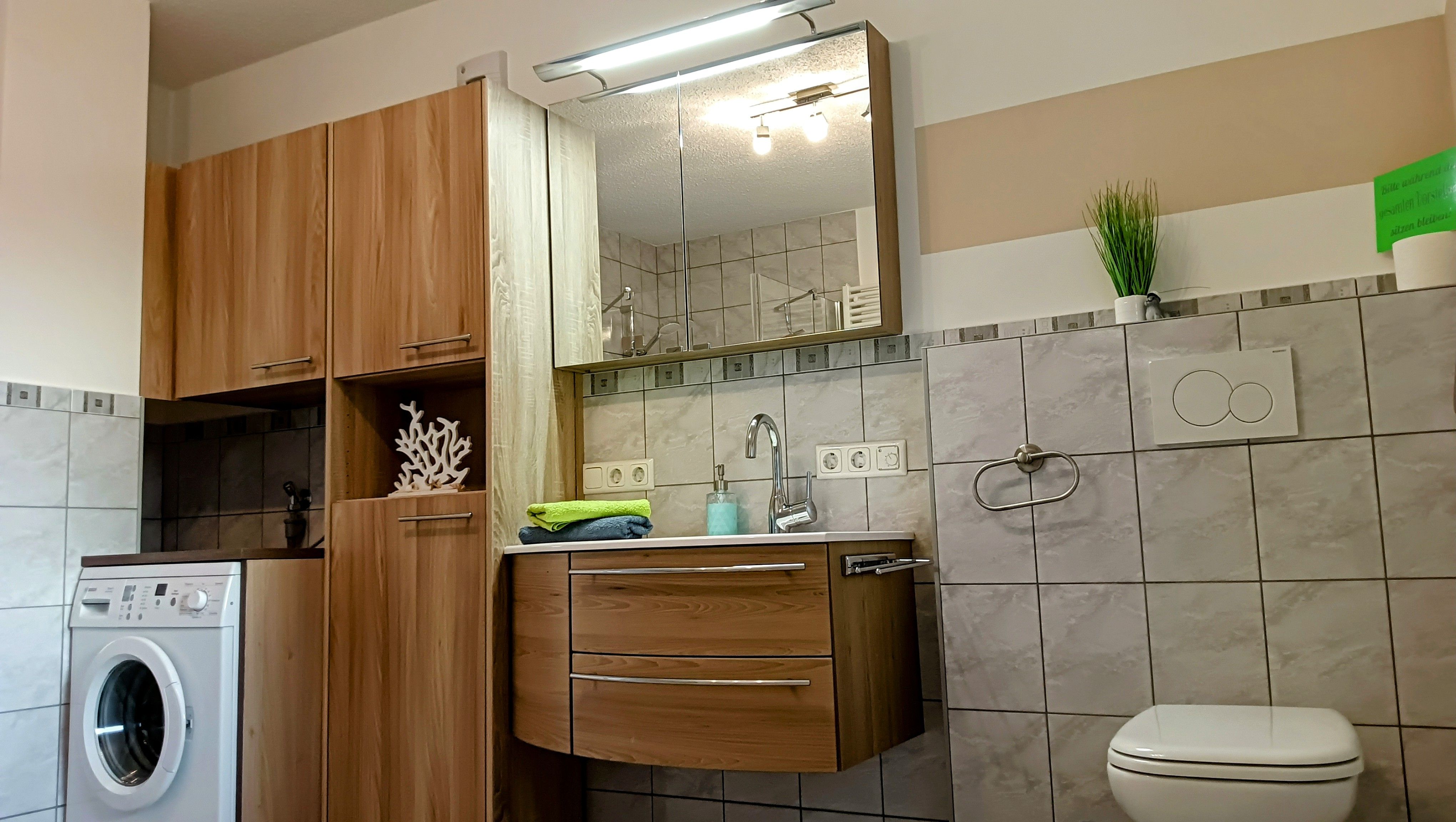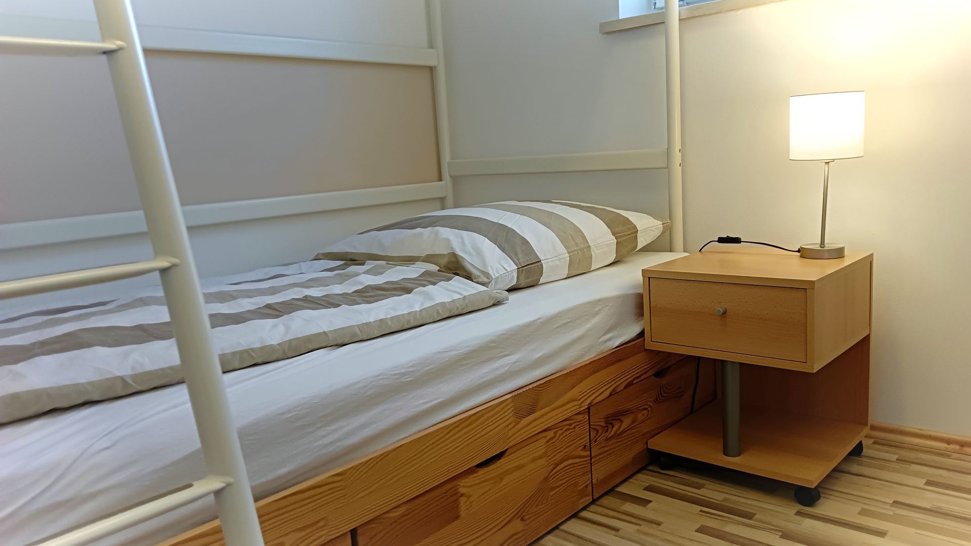 Unsere F**** Ferienwohnung mit über 74m² Wohnfläche bietet Platz für bis zu 4 Personen. Das gemütliche Wohnzimmer mit Flachbild-TV lädt zum Verweilen ein. Die komplett ausgestattete Küche mit Backofen, Geschirrspüler, Kühlschrank, Mikrowelle lässt keine Wünsche offen. Die Ferienwohnung verfügt über 2 Schlafzimmer mit einem Doppelbett, einem Einzelbett und einem Hochbett. Das geräumige Badezimmer mit Dusche, Handtücher und Föhn rundet das Gesamtbild ab. Zum Reinigen Ihrer Kleidung stehen eine Waschmaschine in der Wohnung zur Verfügung. Vor allem im Sommer können Sie entspannte Abende auf unserer Terrasse verbringen. Bitte beachten Sie, dass keine Haustiere erlaubt sind. Das WLAN und den Parkplatz vor dem Haus können Sie kostenfrei nutzen.