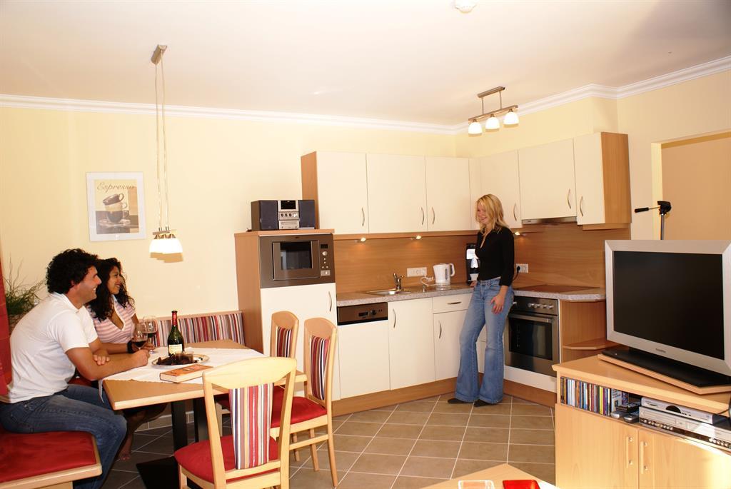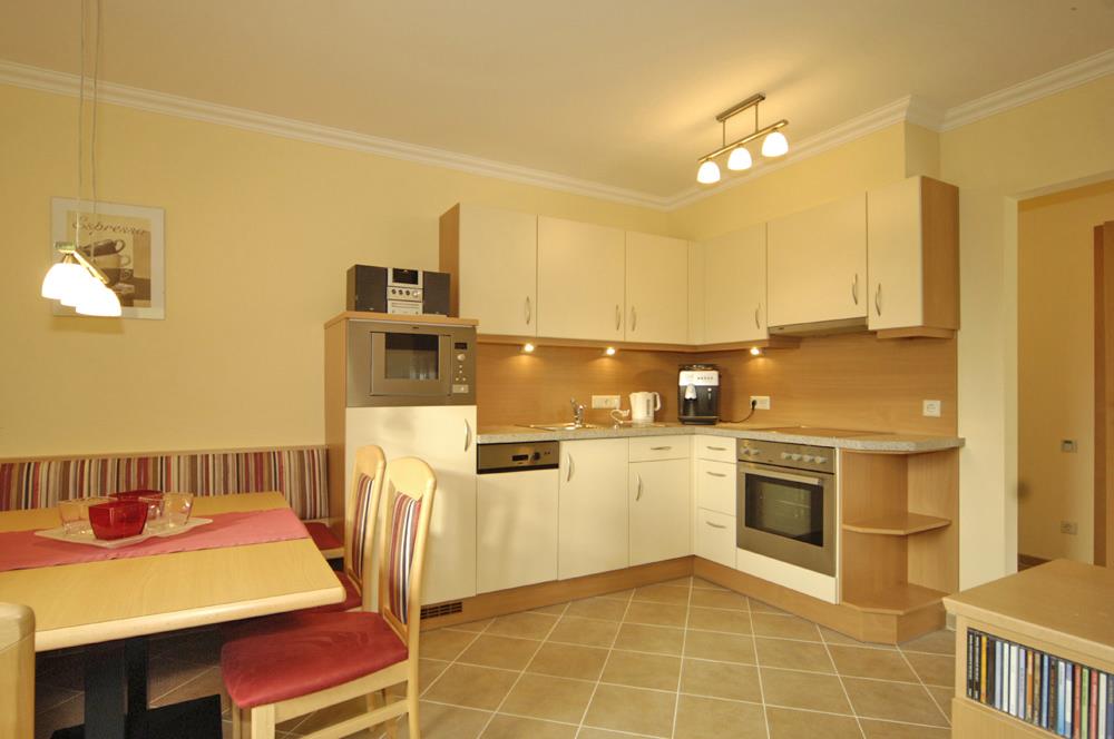 Das sonnige und ruhig liegende Appartement (70m2) verfügt über eine sehr hochwertige Ausstattung. 1 Schlafzimmer mit Doppelbett, 1 Schlafzimmer mit zwei Einzelbetten. Eine ausziehbare bequeme Couch in der großen Wohnküche für 2 Personen vorhanden. Zusatzbett für Person 7 auf Anfrage bei beiden Appartements möglich Gitterbett auf Anfrage möglich Hochstuhl auf Anfrage möglich Preise exklusive Nächtigungsabgabe (€ 1,5/Erwachsene) pro Appartement und Tag Preise inklusive Wasser, Strom und Heizkosten, sowie Geschirr,- Hand,- sowie Badetücher, Bettwäsche, sowie Saunatücher und Bademäntel Für Kurzaufenthalte bis einschließlich 3 Nächte verrechnen wir € 8,-/Person/Tag. NEU- Visa-Master-Maestrocard