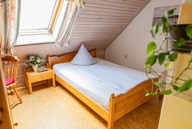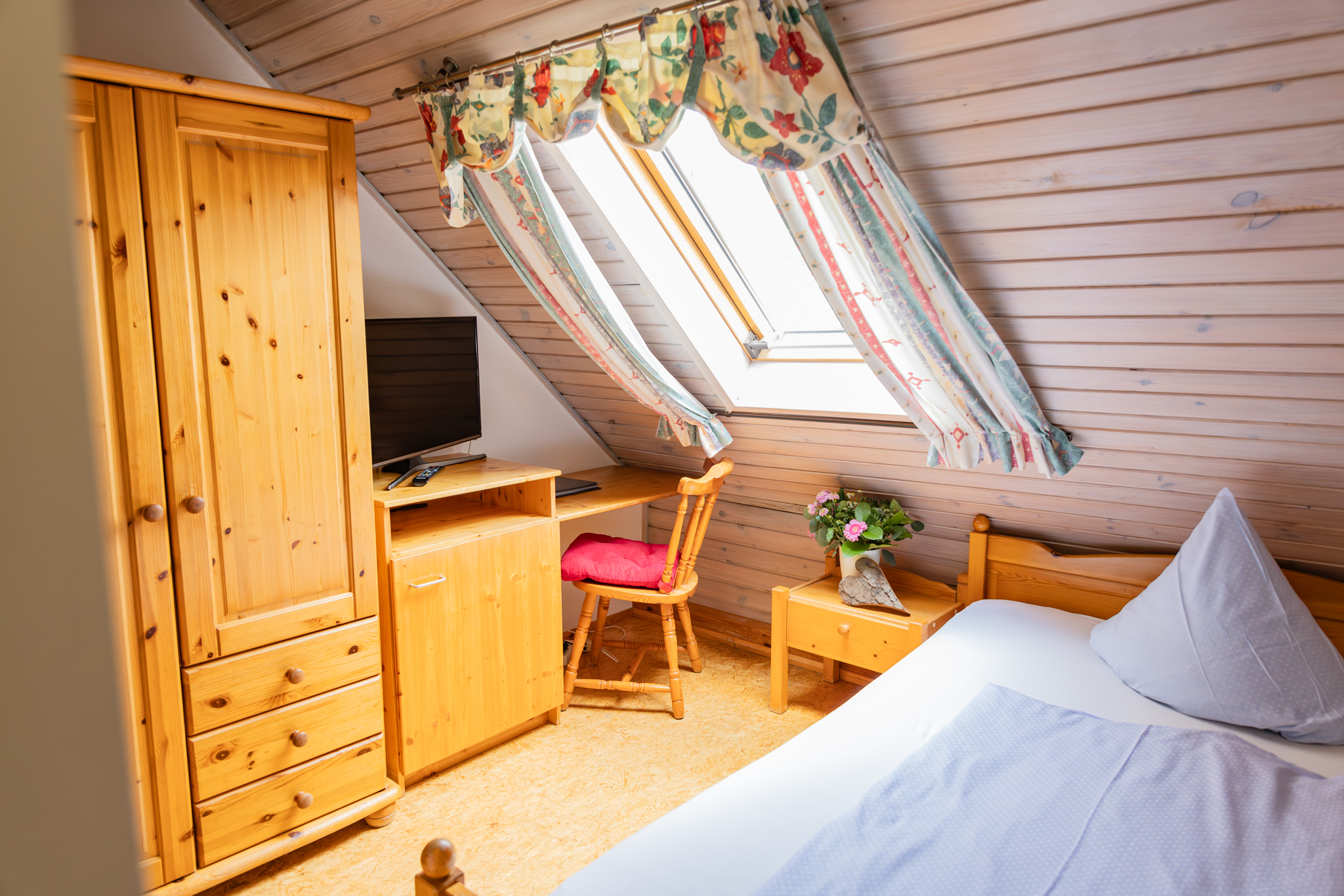 Das gemütlich eingerichtete Zimmer befindet sich in der ersten Etage mit Flachbildfernseher und Kühlschrank.