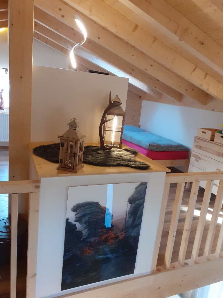 Unser Ferienhaus Herbstzauber mit über 90m² Wohnfläche bietet Platz für 1-4 Personen. Die Ferienwohnung verfügt über 1 Schlafzimmer mit einem Doppelbett und eine Galerie mit 2 Einzelbetten. Die komplett ausgestattete Küche mit Elektroherd mit Kaffeemaschine, Backofen, Kühlschrank mit Gefrierfach, Toaster und Wasserkocher lässt keine Wünsche offen. Das geräumige Badezimmer mit Dusche und Föhn rundet das Gesamtbild ab. Gerne können Sie es sich in unserer Leseecke mit einem Buch gemütlich machen. Direkt vor dem Haus können Sie die Terrasse mit Grillmöglichkeit nutzen. Bitte beachten Sie, dass keine Haustiere erlaubt sind. Den Parkplatz auf dem Grundstück können Sie kostenfrei nutzen.
