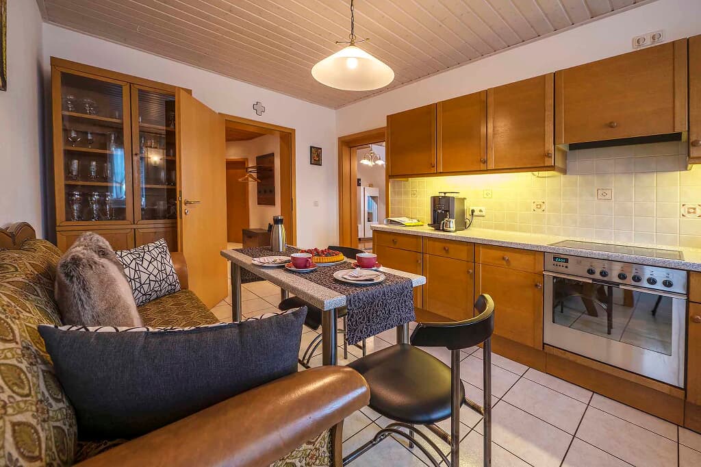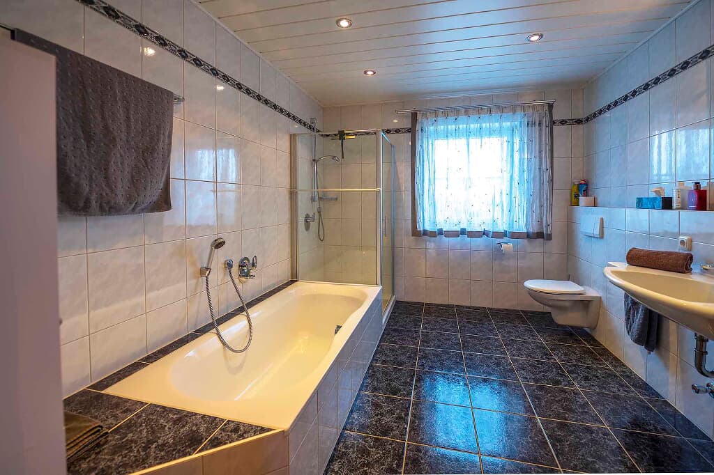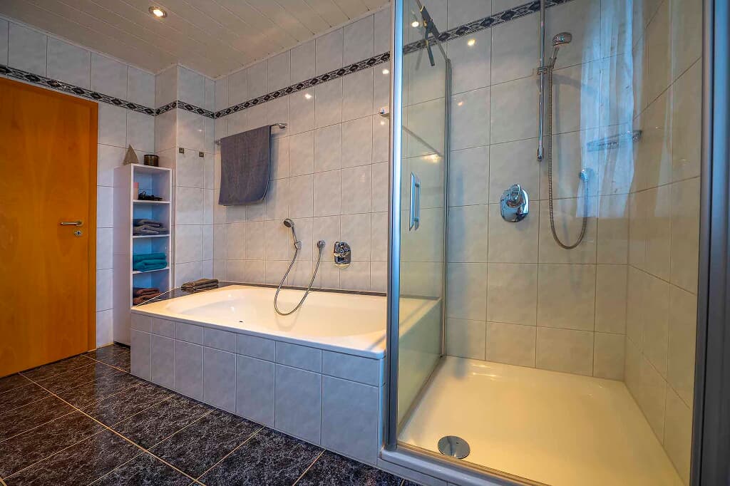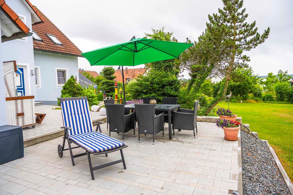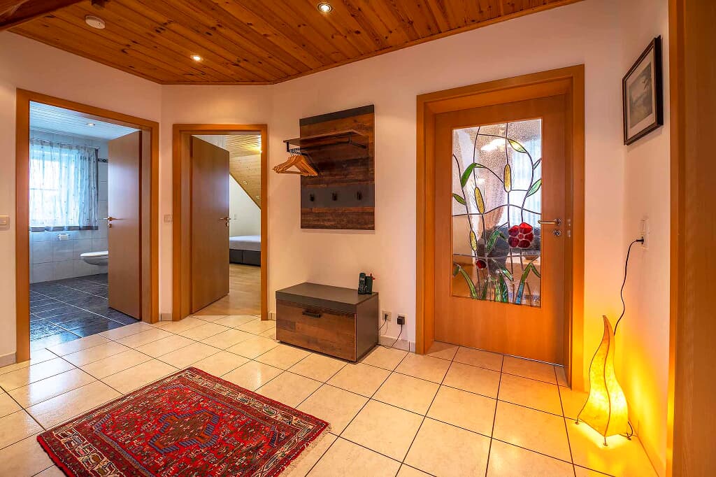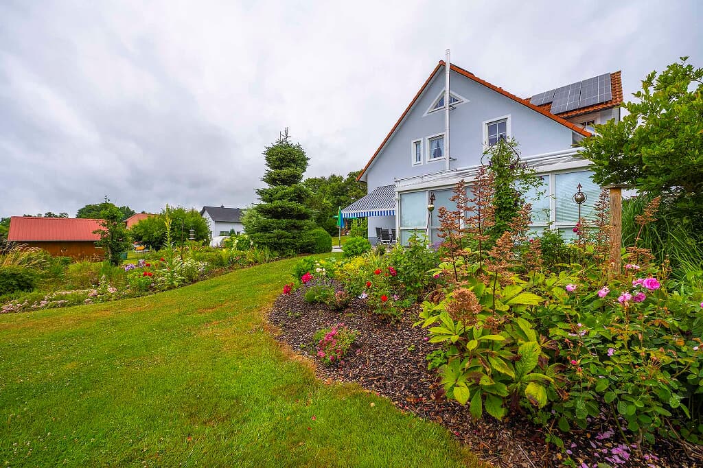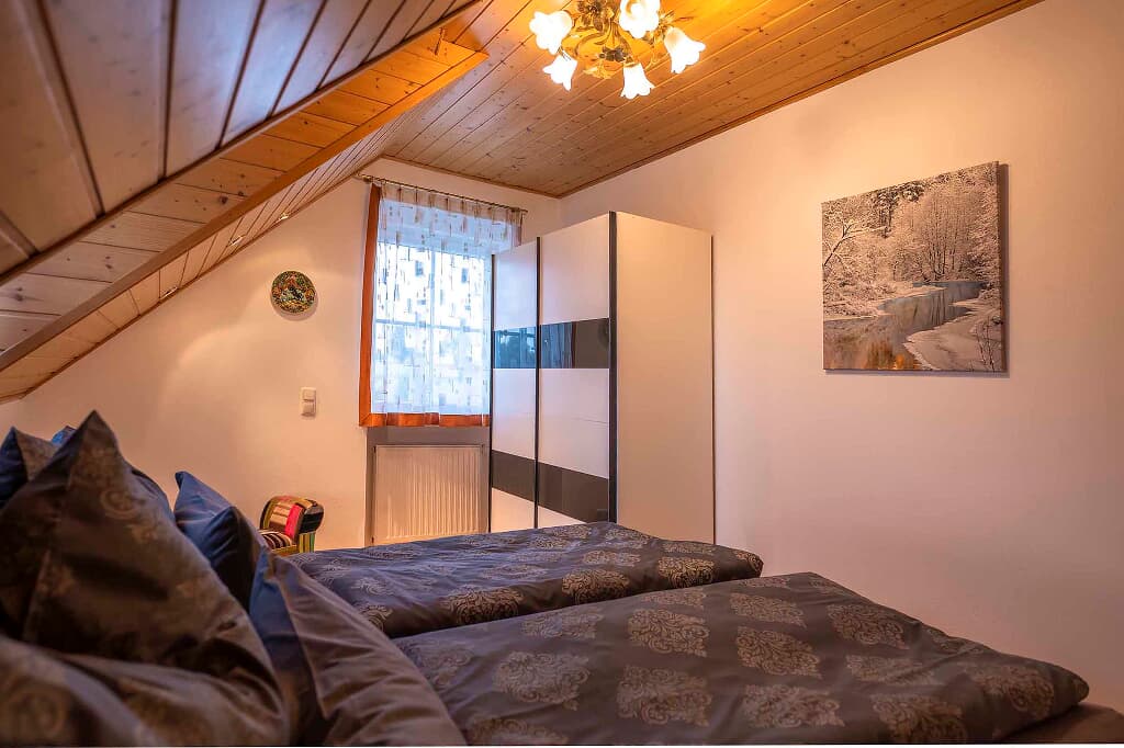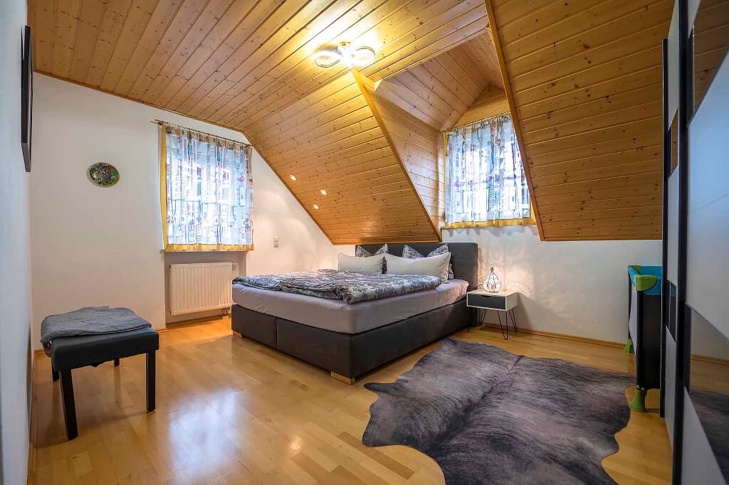 Unsere stylisch und behaglich eingerichtete Ferienwohnung im 1. Stock mit 132 qm Wohnfläche bietet über 2 Etagen Platz für 2- 6 Personen. Das großzügige Wohnzimmer mit Leder-Ecksofa, Flachbild-TV, Bluetooth Lautsprecher und gemütlichem Esszimmer lädt zum Verweilen ein. Die komplett ausgestattete Küche mit Geschirrspüler, Kühl- und Gefrierschrank, Herd, Backofen, Mikrowelle, Brotschneidemaschine, Kaffeevollautomat und Kaffeemaschine, Toaster, Eierkocher, Mixer usw. und vielfältigem Geschirr lässt keine Wünsche offen. Die Ferienwohnung ist mit 3 Schlafzimmern mit Doppel-Boxspringbett ausgestattet. Das 3. Schlafzimmer befindet sich in der 2. Etage mit 2 getrennten Betten. Das geräumige Badezimmer bietet Ihnen Dusche und Badewanne, Fön ist vorhanden. Zusätzlich gibt es ein separates WC. Toilettenpapier, Müllbeutel, Spülmaschinentabs sowie ein Grundsortiment an Gewürzen ist inclusive. Ein Saugroboter sorgt für eine immer saubere Wohnung während Ihres Aufenthaltes. Waschmaschine und Trocker stehen bei Bedarf zur Verfügung. Die Wohnung ist Allergiker freundlich und eine Nichtraucherwohnung. Der großzügige Garten lädt zum Relaxen und Sonnenbaden und Grillen auf eigener Terrasse ein. WLAN und Parkplatz können sie kostenfrei benutzen. Der Parkplatz ist mit einer Elektroladetankstelle (Wallbox mit AC Laden) ausgestattet. Hier können Sie nachhaltigen Strom aus unserer hauseigenen Photovoltaikanlage aufladen. Radfahrer und Motorradfahrer sind Herzlich Willkommen. Hier steht zum Abstellen eine Garage zur Verfügung.