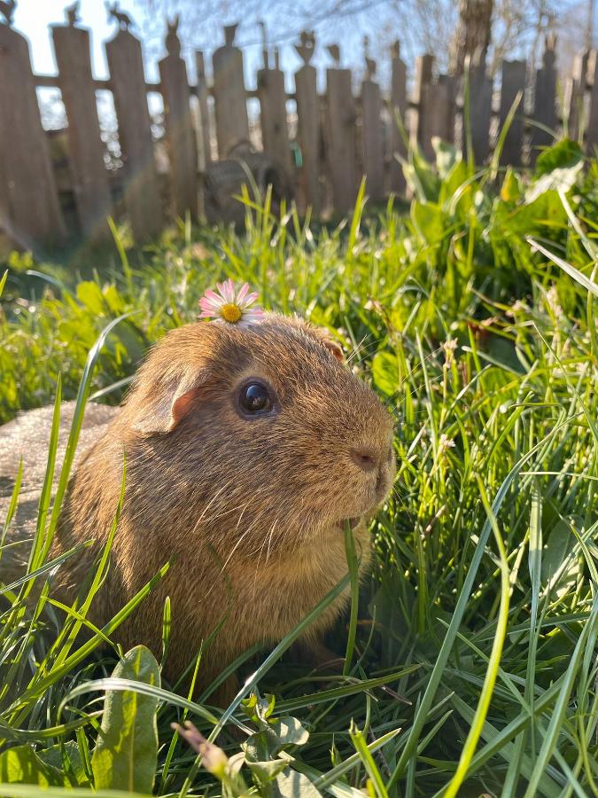 Die Wohnungen sind von einen großen Garten umgeben, mit Spielmöglichkeiten für die Kinder und Grillplätzen für Erwachsene. Im Garten ist auch ein kleines Gehege mit Hasen und Meerschweinchen Ein paar Meter weiter können Hühner, Truthähne und Enten beobachtet werden.