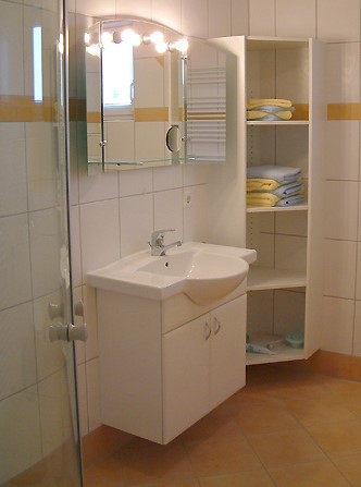 Unsere Wohnungen sind alle mit komplett eingerichteter Küchenzeile ausgestattet. Herd, Spülmaschine, Mikrowelle, Kaffeemaschine, Toaster, Eierkocher sind in unserem Haus ebenso selbstverständlich wie Fliegengitter, Telefon und WLAN. Schöner Tisch mit Seeblick, Sofa und Fernsehecke - Sat-TV, Badezimmer mit Dusche, WC und Föhn.