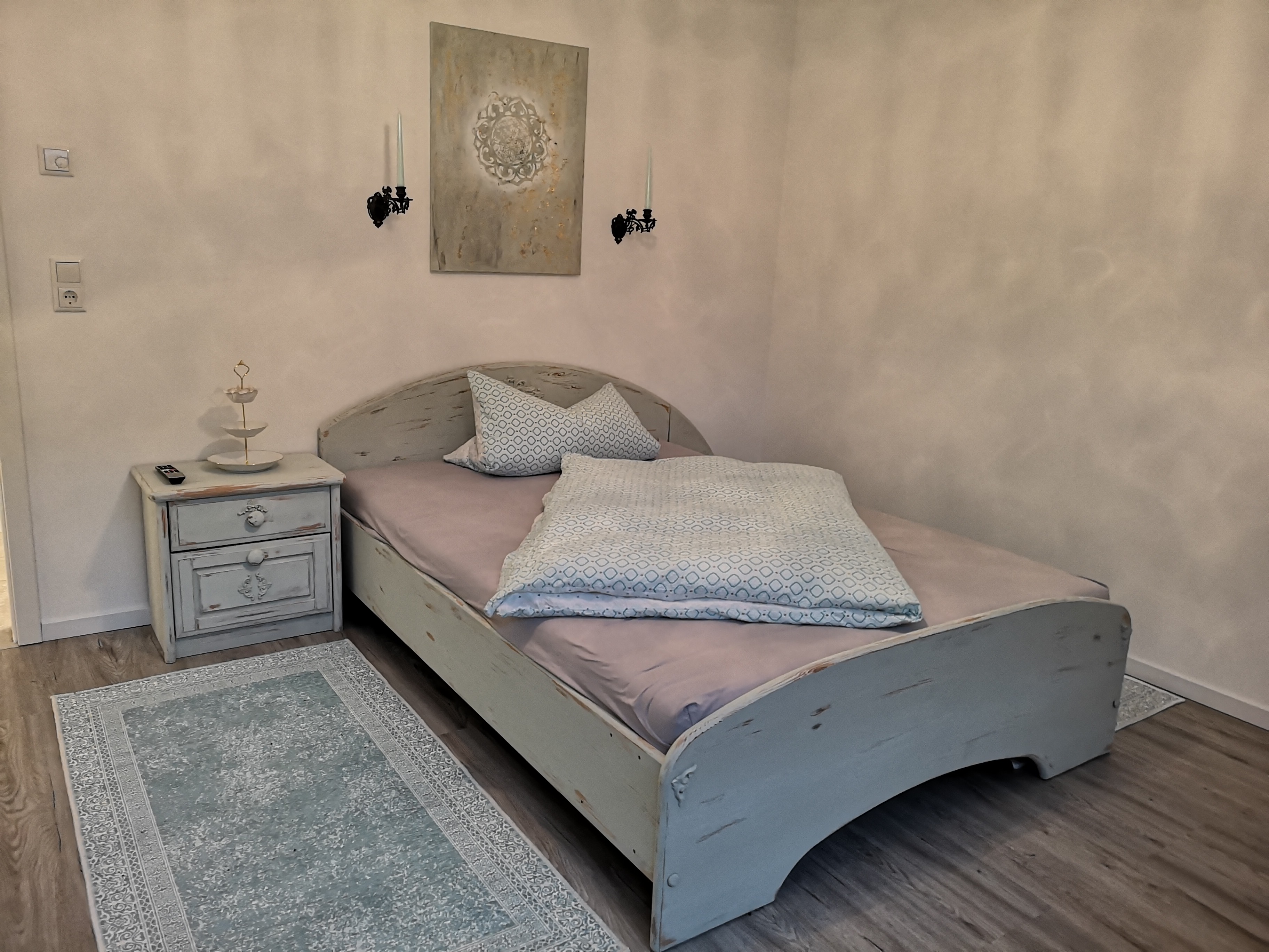 Im Vintage-Style gestaltete Ferienwohnung mit Fußbodenheizung in Nähe der Autobahn (3 km) in ruhiger Wohnlage in Waldnähe (5 min).
