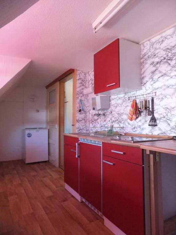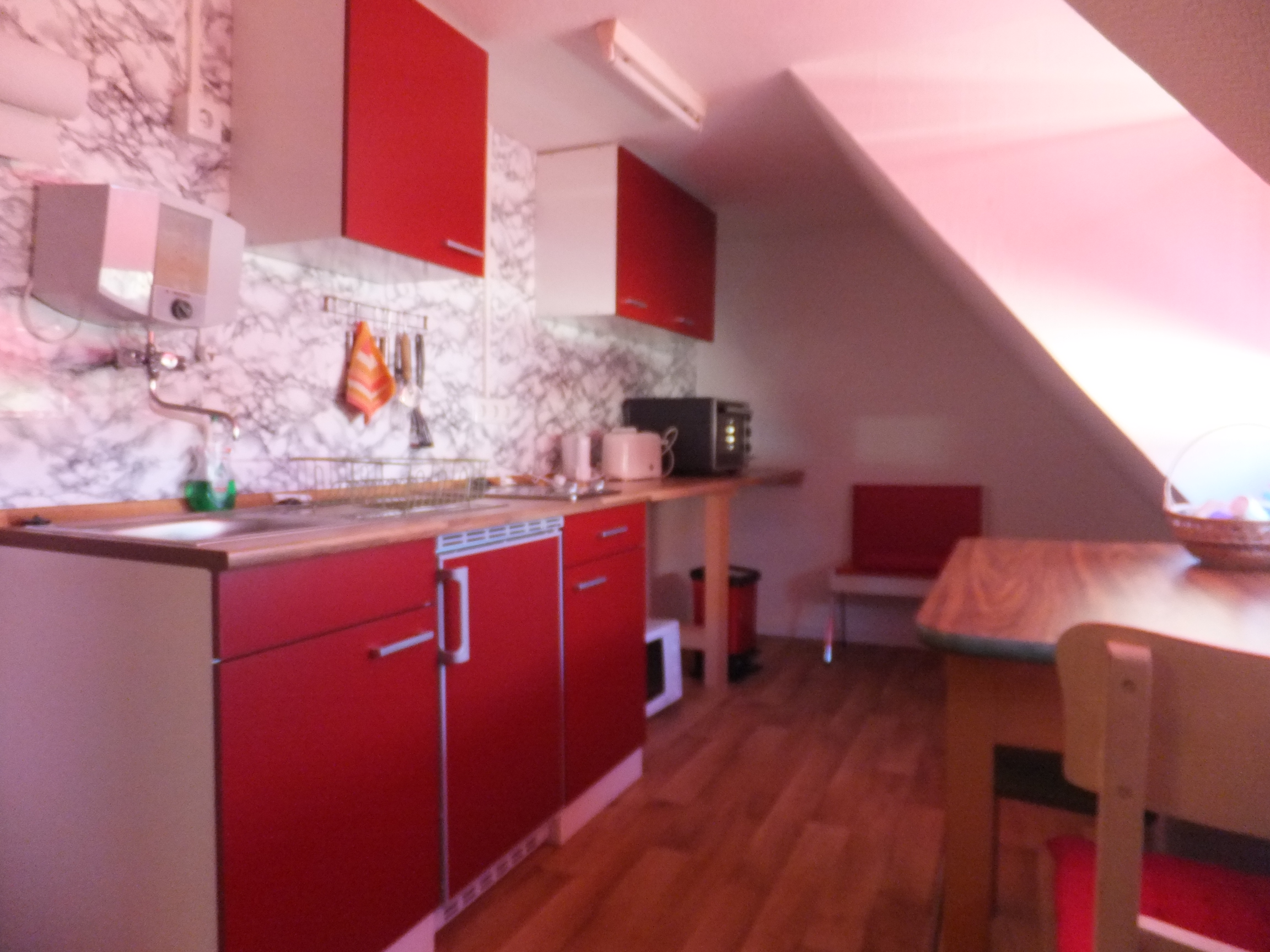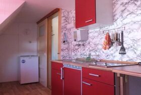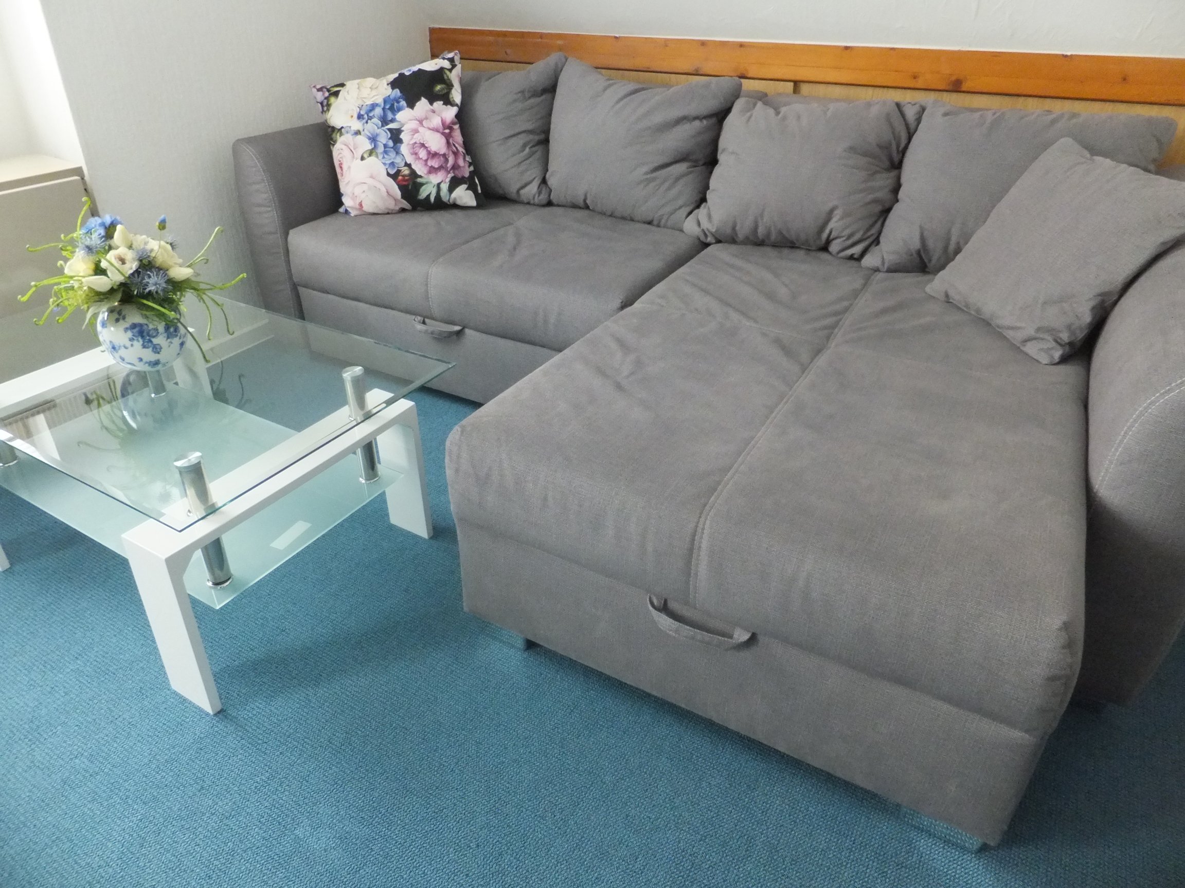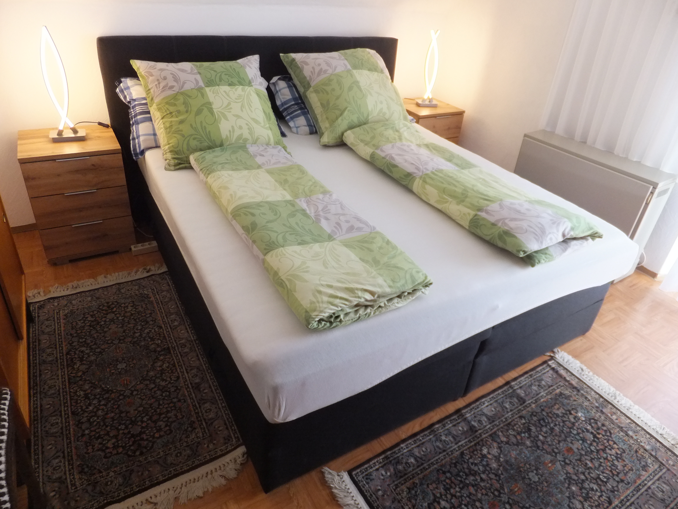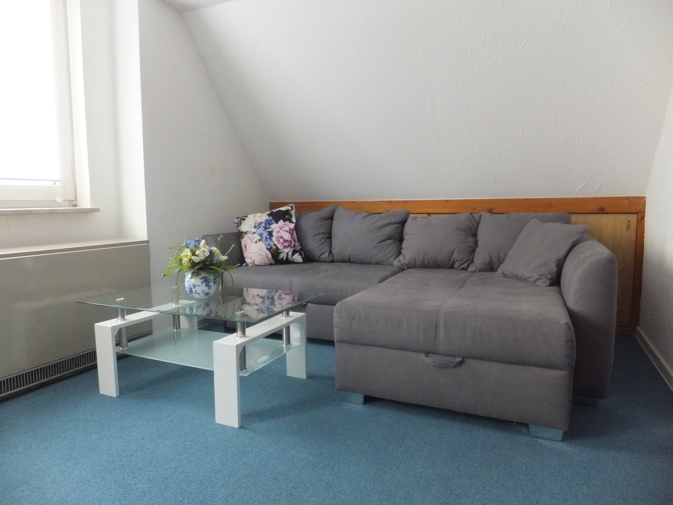 Die Ferienwohnung liegt im 1. Stock und bietet auf 52 Quadratmetern Platz für bis zu 3 Personen. Sie verfügt über eine Küche mit Küchenzeile, einen Wohn- und Schlafbereich, ein Schlafzimmer und ein Badezimmer. Die Küchenzeile ist mit Backofen, Kühlschrank, Gefrierschrank, Kaffeemaschine, Toaster und Mikrowelle voll ausgestattet. Im Wohn- und Schlafbereich steht Ihnen ein ausziehbares Schlafsofa für die dritte Person, ein Essbereich und ein Fernseher zur Verfügung. Das separate Schlafzimmer ist mit einem Boxspringbett ausgestattet. Das Badezimmer ist mit Dusche, Waschbecken, WC und Fön ausgestattet. Die Feriehwohnung verfügt zudem über einen Balkon. Bettwäsche und Handtücher sind kostenfrei vorhanden. Einen Parkplatz und das WLAN können Sie ebenfalls kostenfrei nutzen.