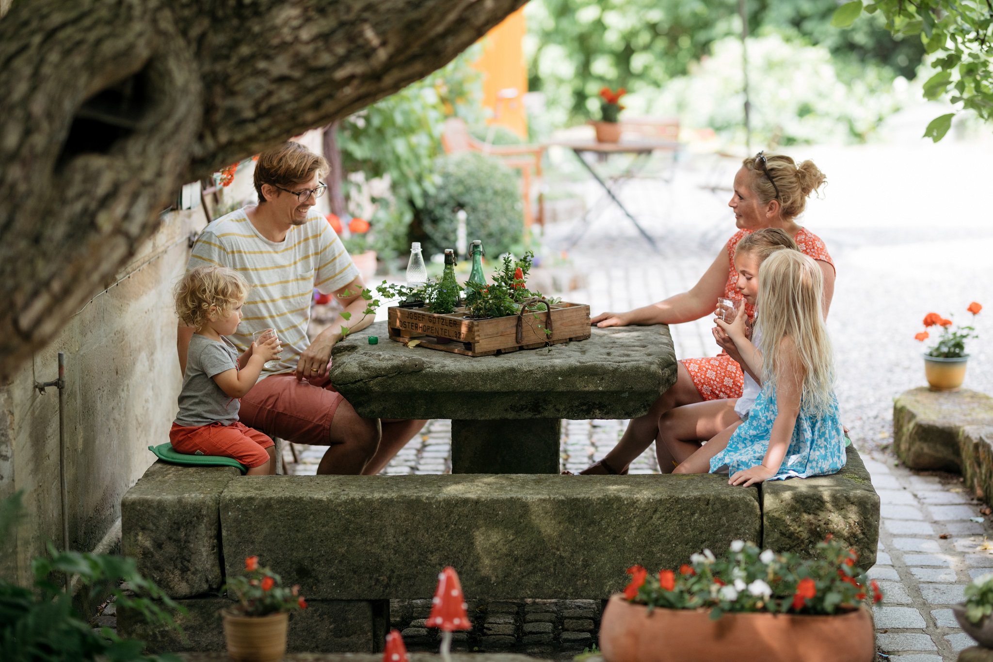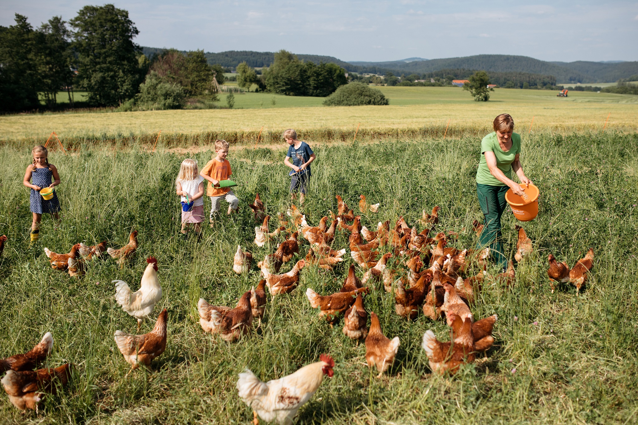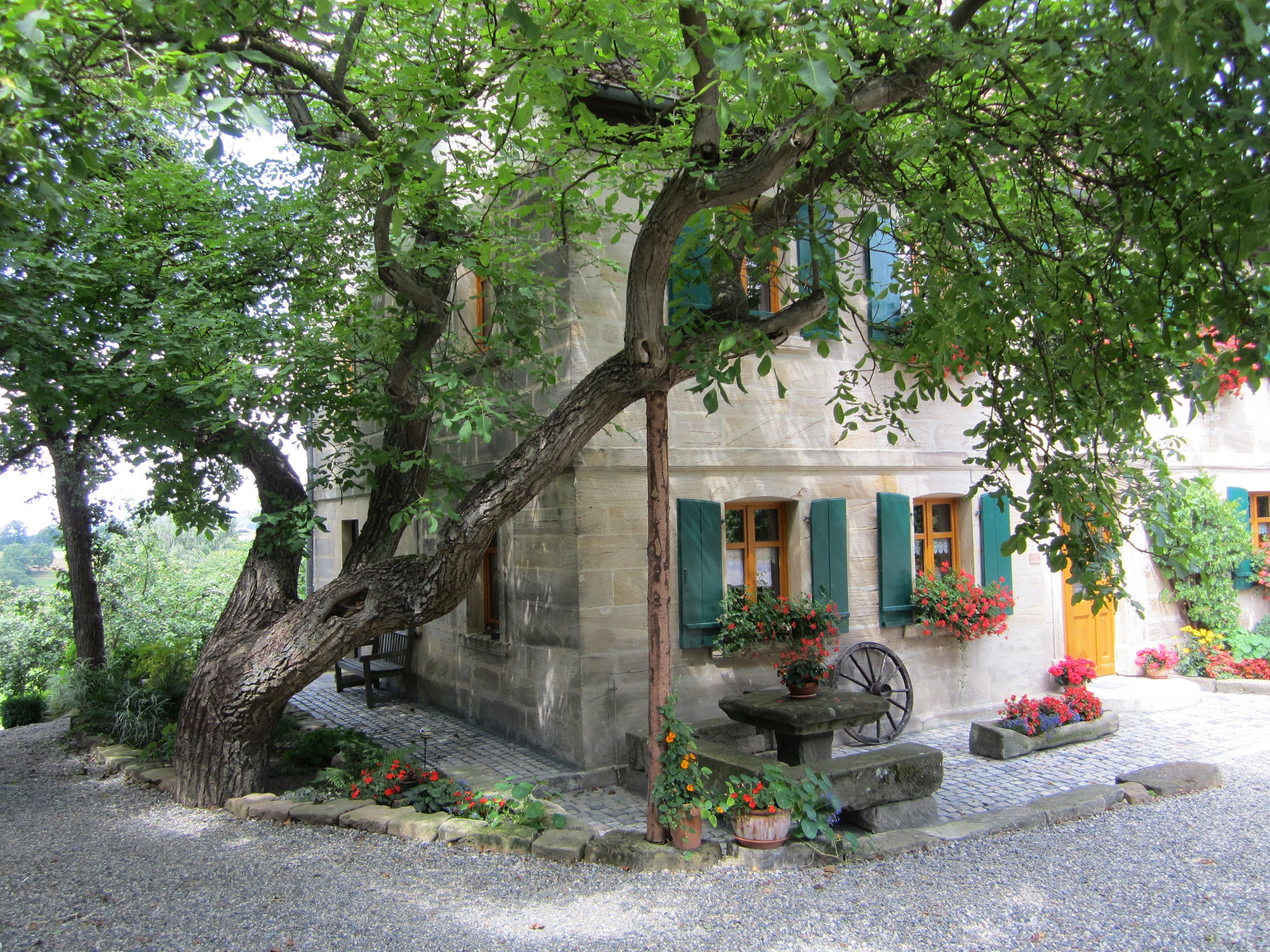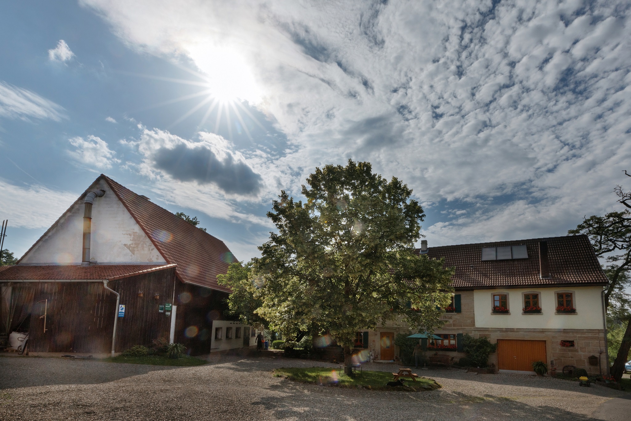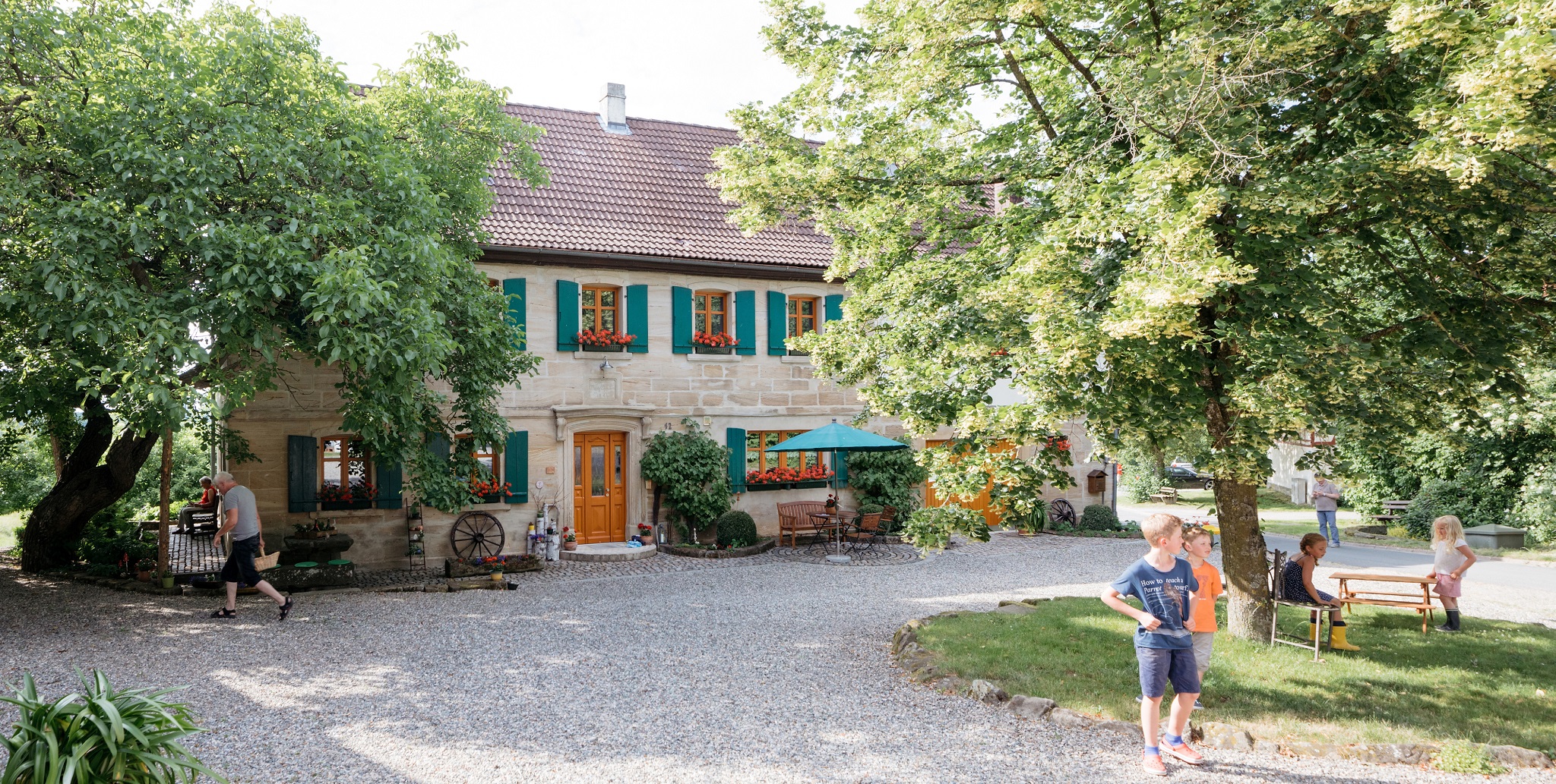 Das Landhaus ist ein altes fränkisches Bauernhaus, das wir liebevoll für Sie renoviert haben. Ursprüngliches wurde bewahrt und mit modernem Ambiente umgeben. Wir bewirtschaften unseren Bauernhof nach Bioland Richtlinien. Neben Rindern auf der Weide, Pferd und Pony, gibt es Ziegen, Hund, Katze und jede Menge Federvieh. Mithilfe der Kinder ist immer herzlich willkommen! In unserem Hofladen können Sie sich rund um die Uhr mit biologischen Grundnahrungsmitteln versorgen. Gerne können Sie sich Ihre Frühstückseier selbst sammeln.
