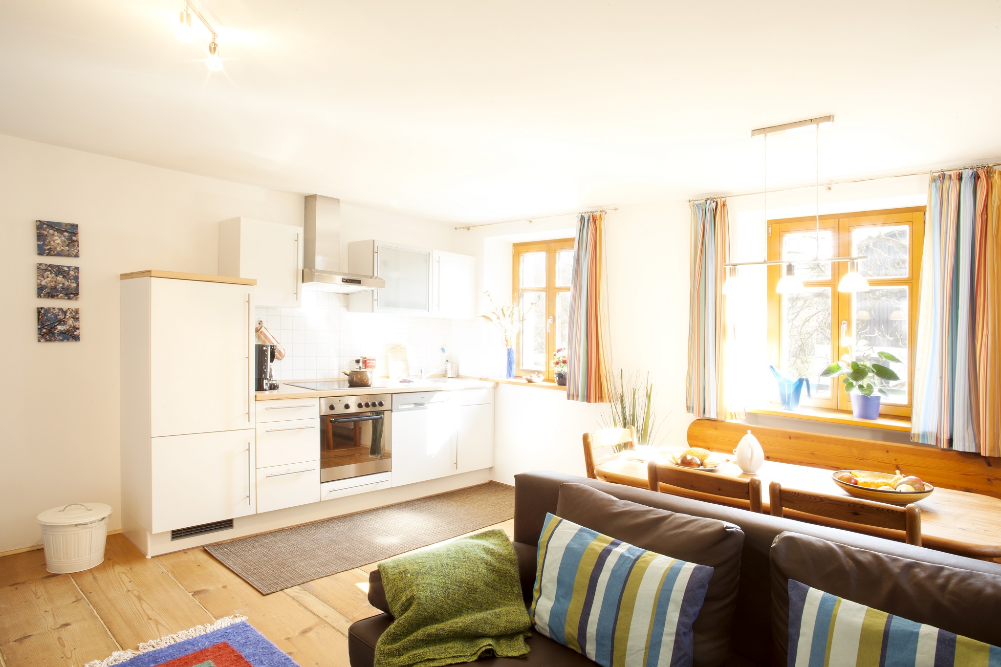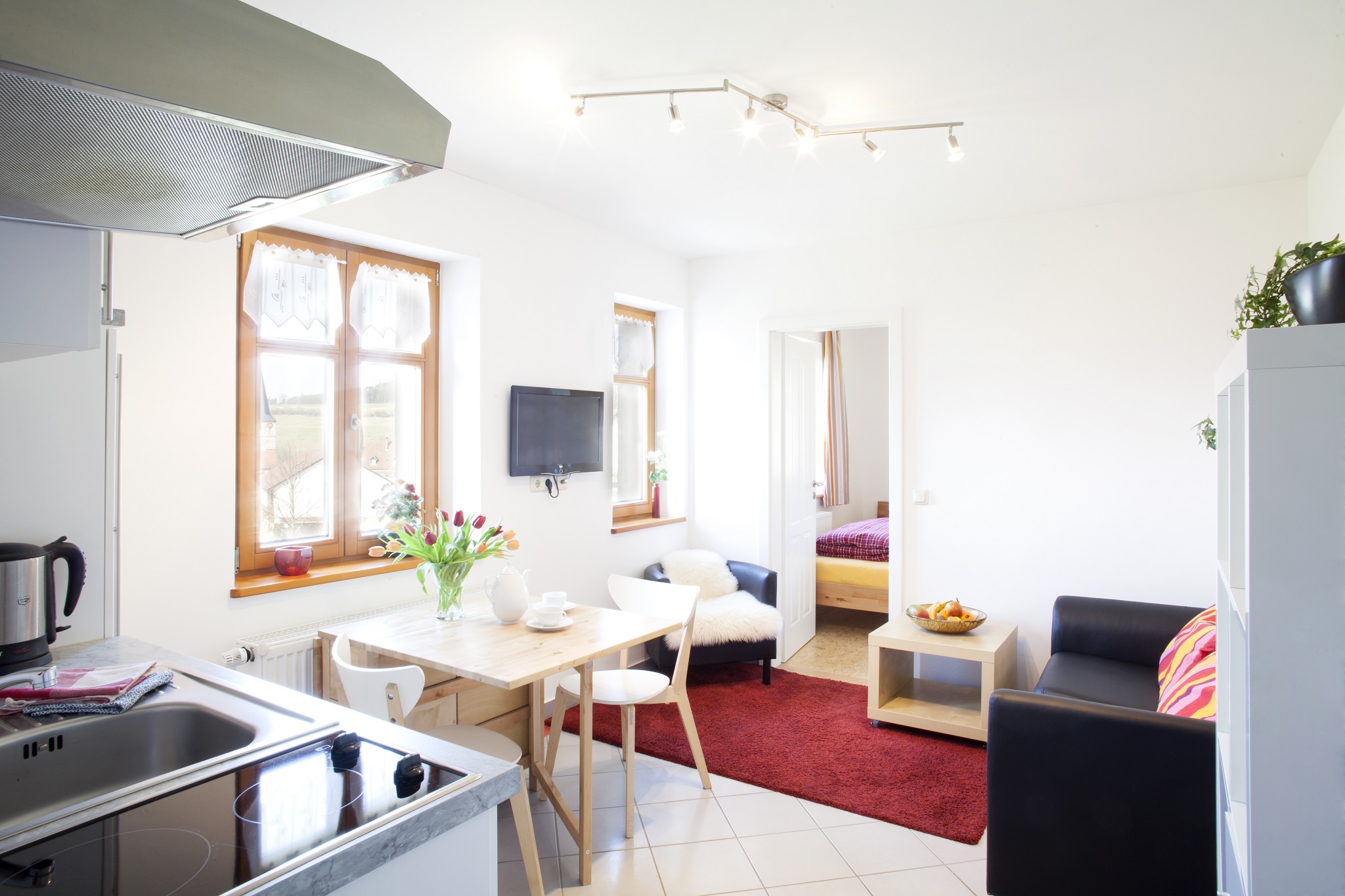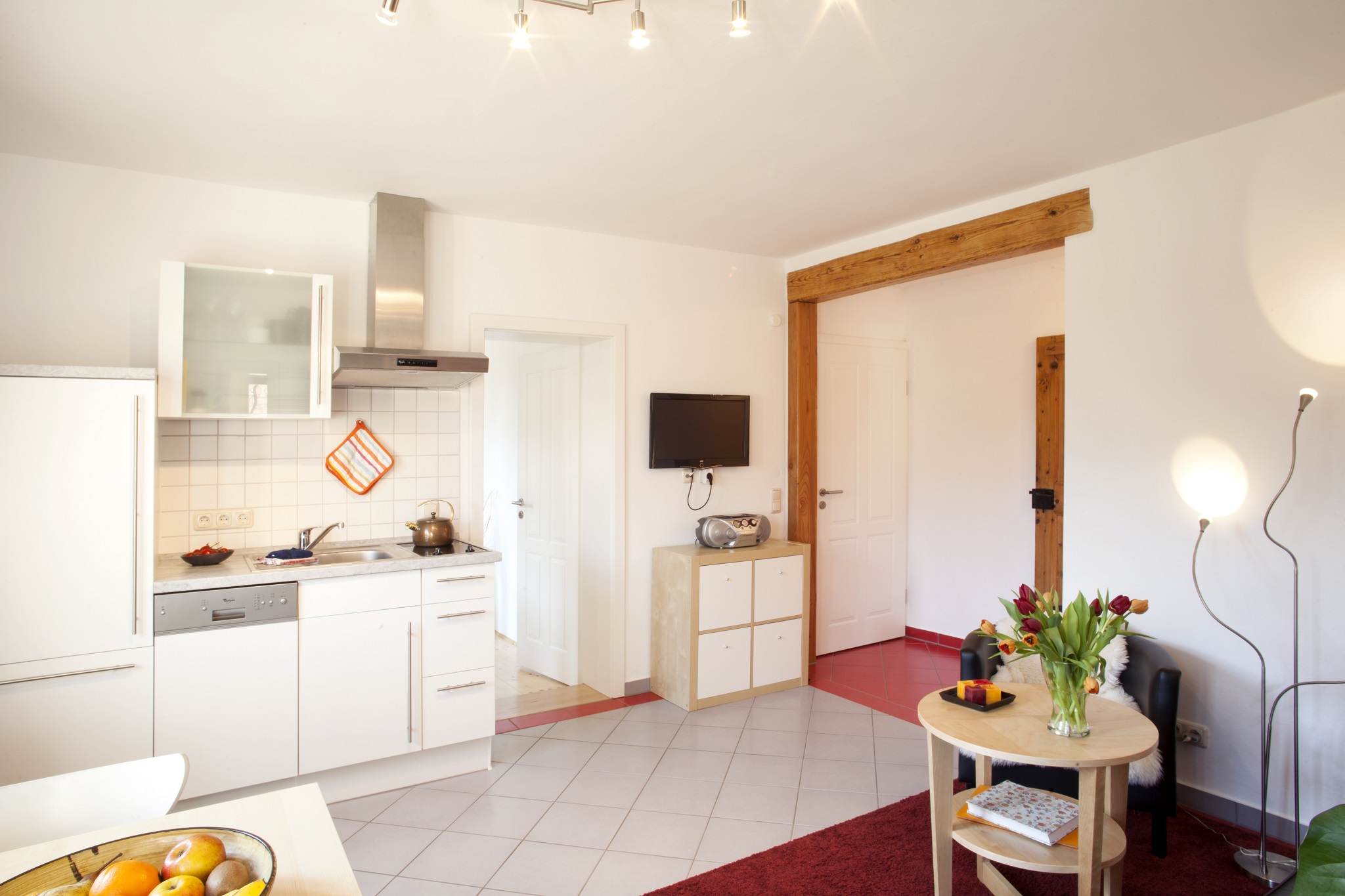 Jedes unserer Apartments ist standardmäßig mit Bett- und Badwäsche ausgestattet. Zudem besitzt jede Wohnung einen Sat-TV und CD-Player. Internet ist heutzutage selbstverständlich. Die Küche ist mit einem Herd, zum Teil auch einem Backofen versehen. Des Weiteren befinden sich dort Kühlschrank, Spülmaschine, Kaffeemaschine, Wasserkocher, Mikrowelle usw. Jedes Apartment ist mit einem Badezimmer mit Dusche und WC ausgestattet.