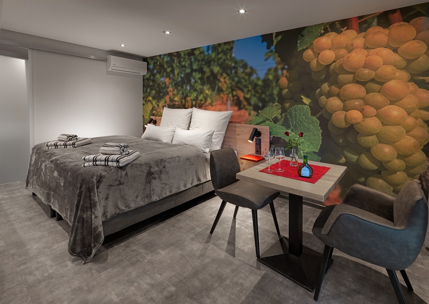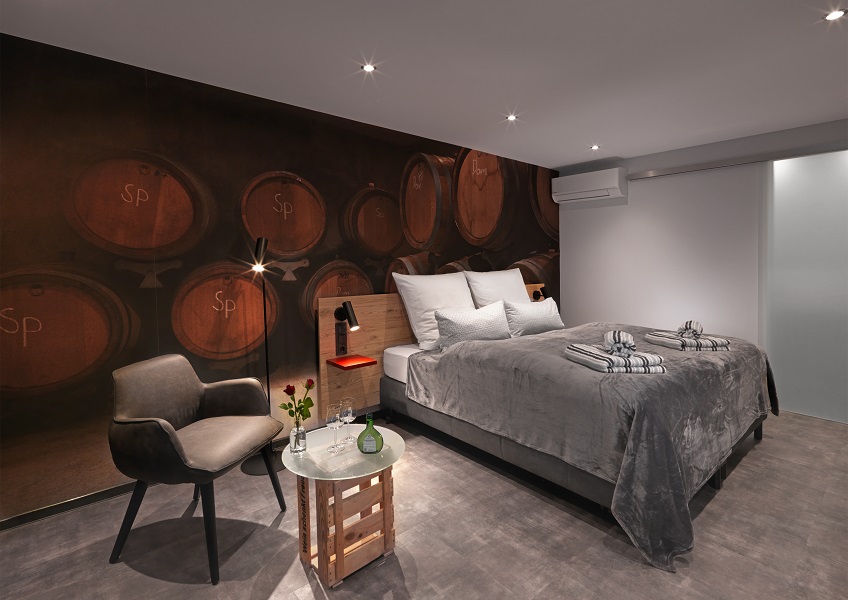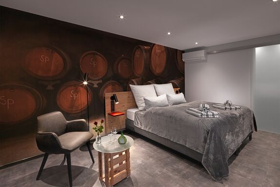 Jedes unserer stilvoll eingerichteten Nichtraucher-Zimmer hat seinen eigenen Wein-Charakter. Ein modernes Boxspringbett mit allergikerfreundlicher Bettwäsche lädt zum Entspannen ein. Alle unsere Betten können sowohl als Einzel- als auch als Doppelbetten genutzt werden. In allen unseren modernen Zimmern finden Sie einen Flat-Screen Sat-TV, einen Schreibtisch mit USB Steckdose, gratis WLAN und einen Hotelsafe. Für das optimale Klima in jeder Jahreszeit bieten wir Ihnen eine individuell regelbare Klimaanlage und eine Fußbodenheizung. Genießen Sie gerne einen Kaffee aus der zimmereigenen Nespresso Kaffeemaschine oder probieren Sie das bereitgestellte Teesortiment. Das großzügige Badezimmer verfügt neben einer Walk In-Regendusche über einen beleuchteten Kosmetikspiegel, einen Föhn und ein WC. Gerne stellen wir Ihnen auf Wunsch Hotelkosmetik und Hygieneartikel bereit. Zwei Zimmer im Erdgeschoss ind auch Barrierefrei zugänglich. Um den Abend gemütlich ausklingen zu lassen, bedienen Sie sich gerne an dem integrierten Weinkühlschrank, welchen wir Ihnen gerne gegen Aufpreis füllen.