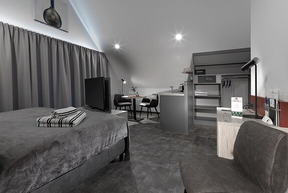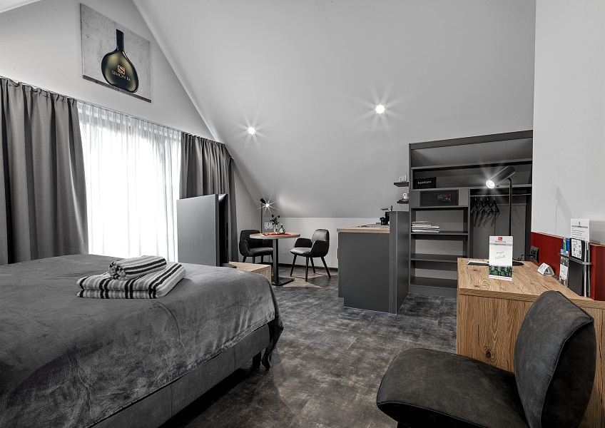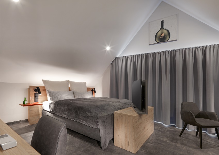 Jedes unserer stilvoll eingerichteten Nichtraucher-Zimmer hat seinen eigenen Wein-Charakter. Ein modernes Boxspringbett mit allergikerfreundlicher Bettwäsche lädt zum Entspannen ein. Alle unsere Betten können sowohl als Einzel- als auch als Doppelbetten genutzt werden. In allen unseren modernen Zimmern finden Sie einen Flat-Screen Sat-TV, einen Schreibtisch mit USB Steckdose, gratis WLAN und einen Hotelsafe. Für das optimale Klima in jeder Jahreszeit bieten wir Ihnen eine individuell regelbare Klimaanlage und eine Fußbodenheizung. Genießen Sie gerne einen Kaffee aus der zimmereigenen Nespresso Kaffeemaschine oder probieren Sie das bereitgestellte Teesortiment. Das großzügige Badezimmer verfügt neben einer Walk In-Regendusche über einen beleuchteten Kosmetikspiegel, einen Föhn und ein WC. Gerne stellen wir Ihnen auf Wunsch Hotelkosmetik und Hygieneartikel bereit. Um den Abend gemütlich ausklingen zu lassen, bedienen Sie sich gerne an dem integrierten Weinkühlschrank, welchen wir Ihnen gerne gegen Aufpreis füllen.