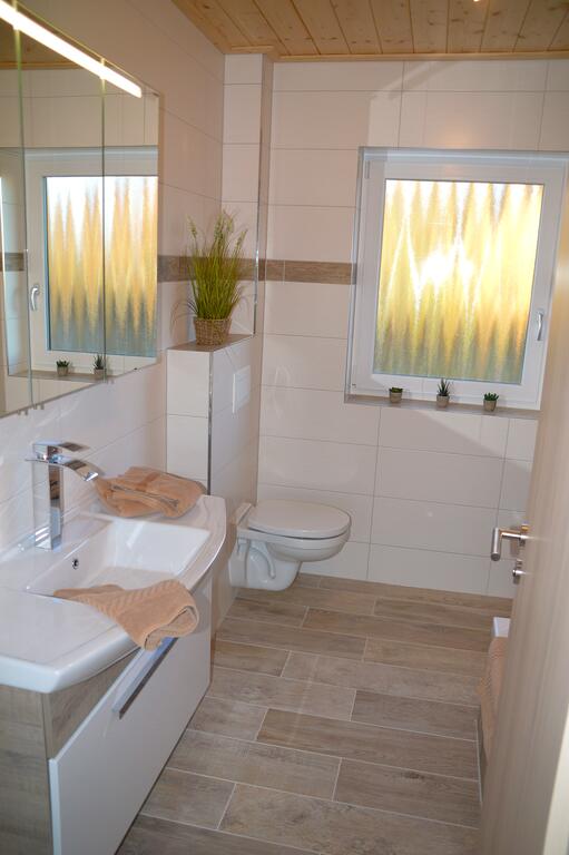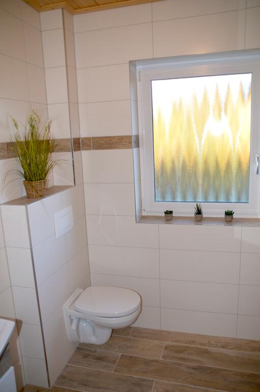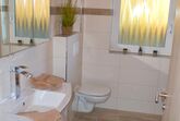 Das Badezimmer mit Dusche, Badewanne, Waschbecken und WC rundet das Gesamtbild ab. Bitte denken Sie daran eigene Handtücher mitzubringen.