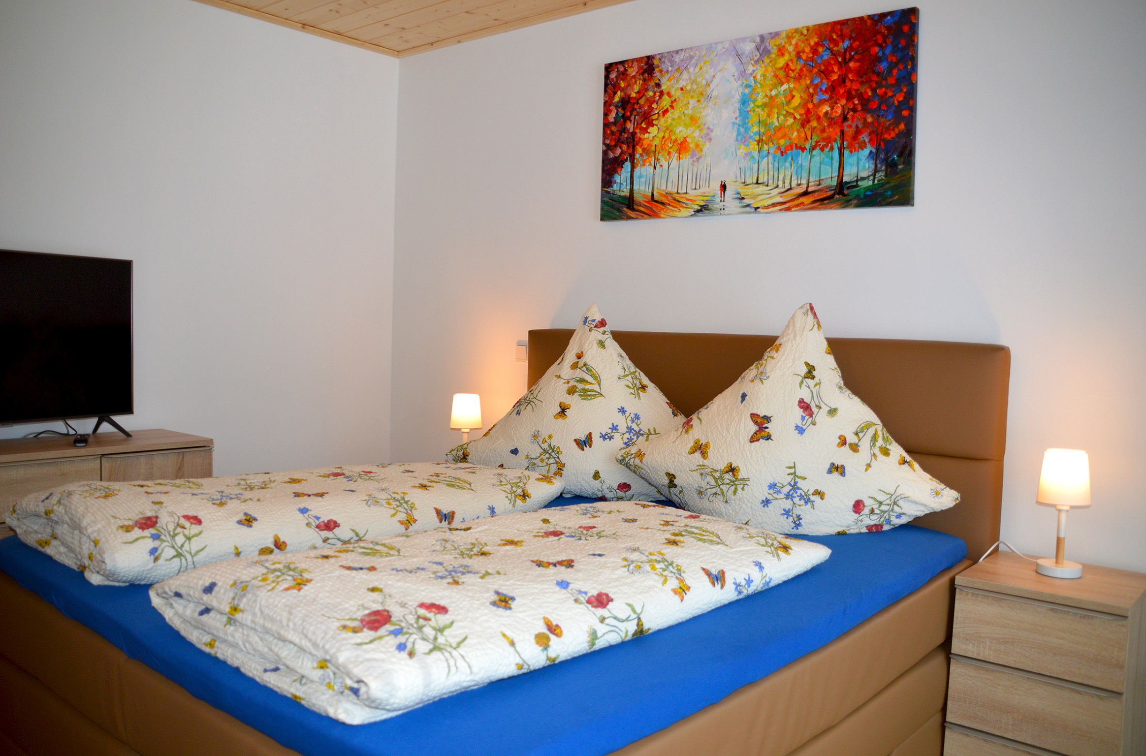Unser gemütliches, ebenerdiges Ferienhaus Kornberg ist 95 m² groß und verfügt über elektrische Rollos sowie über eine Fußbodenheizung. Die 2 getrennten Schlafzimmer sind jeweils mit einem Doppelbett und einer durchgehenden Matratze ausgestattet. Im Elternschlafzimmer ist zusätzlich ein TV vorhanden.