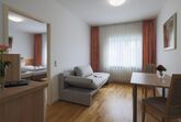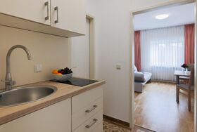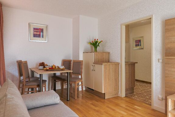Dieses Appartement bestehet aus einem Schlafzimmer mit Aufenthaltsbereich, Küchenzeile und Bad. Perfekt für Sie und Ihre Kids.