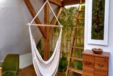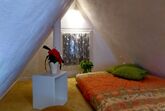 Im Spitzbogen befindet sich ein Doppelbett, dieser Bereich ist besonders für kleinere Menschen geeignet.