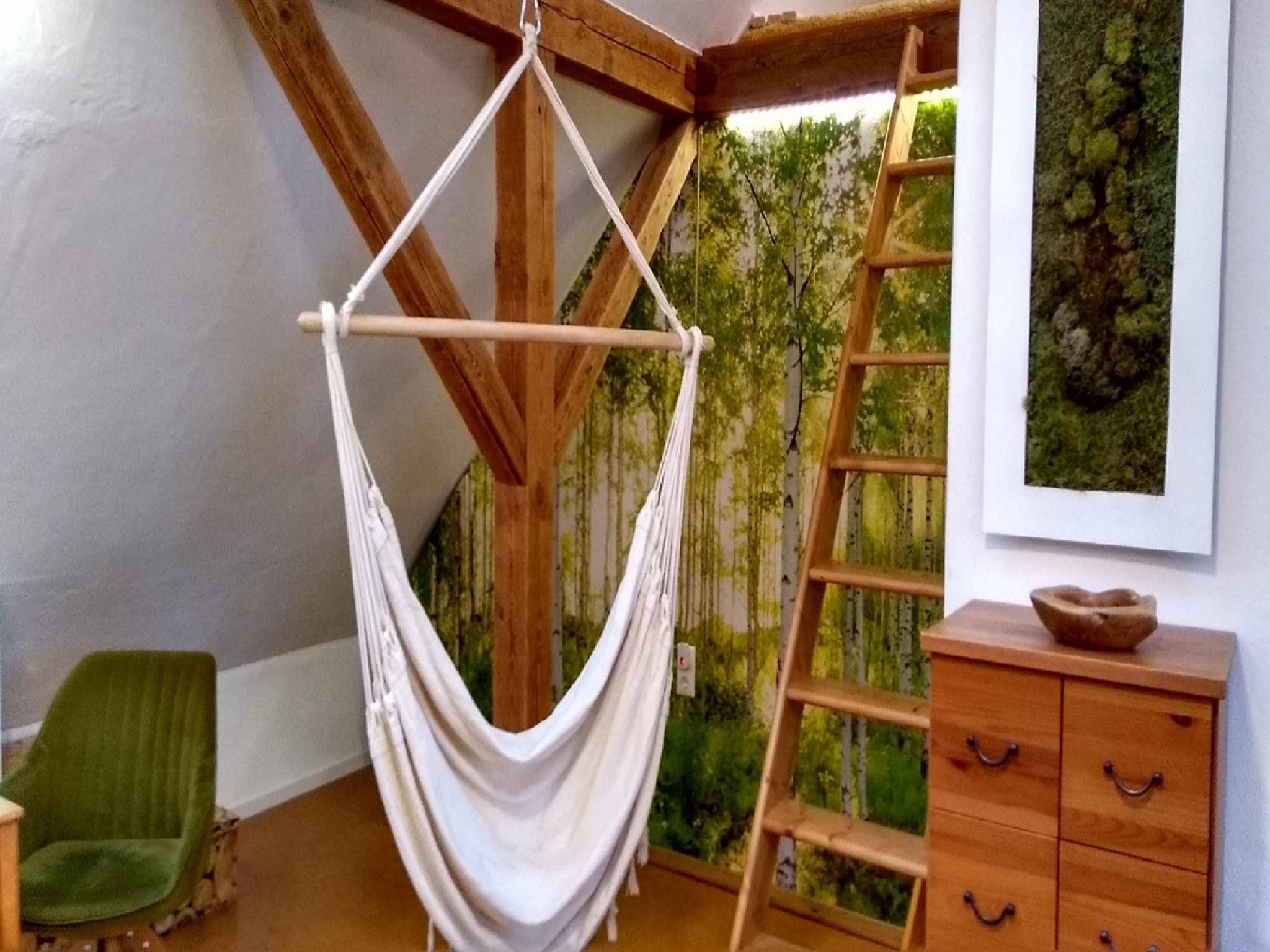 ich heiße Sie herzlich Willkommen in meiner kleinen, aber besonderen Dachwohnung am Weidachbach, mit direktem Zugang zum Fahrradweg.