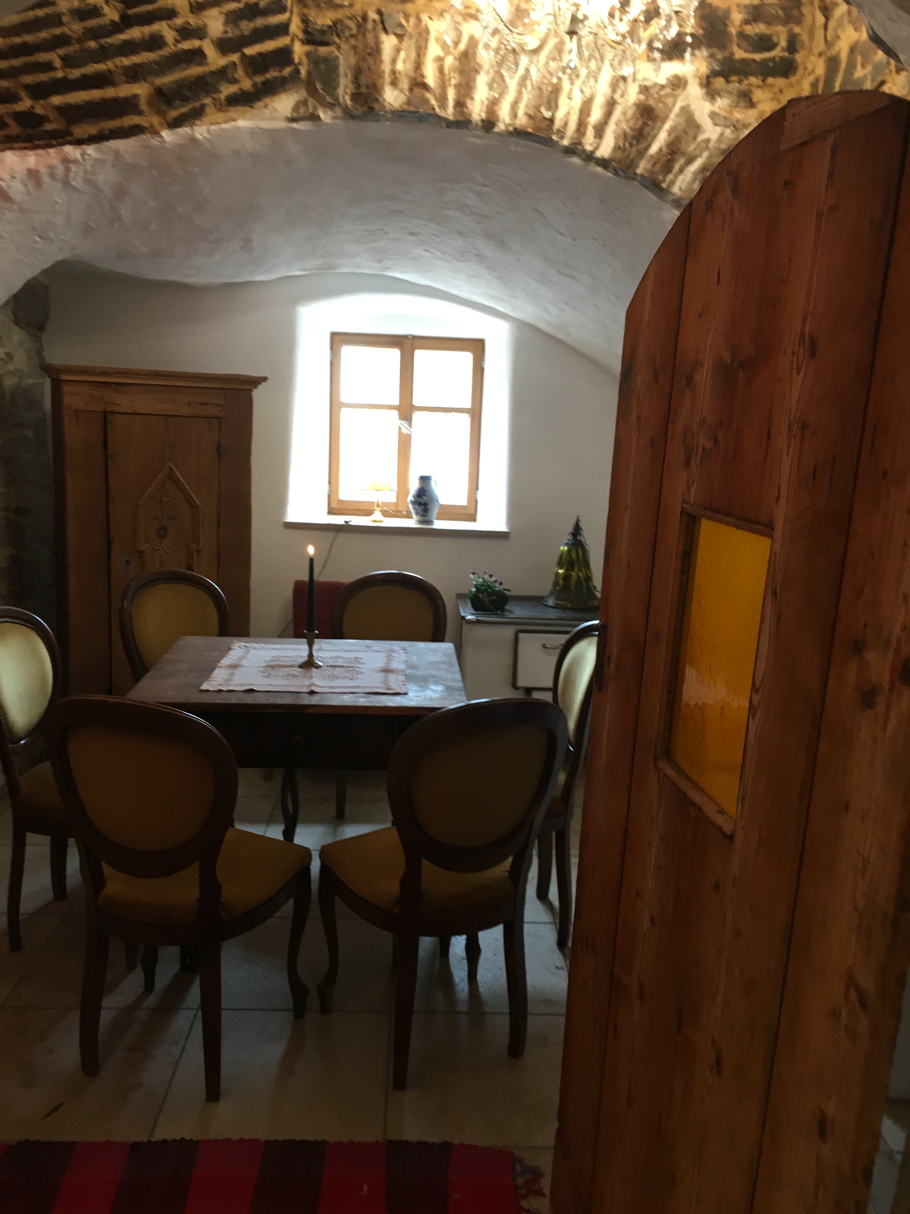 Desweiteren folgt ein Erlebnisraum, in dem mal ein alter Kamin stand, ausgestattet auch mit einem Tisch und 4 Stühlen.