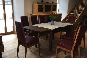 Die Wohnung ist wunderbar gemütlich mit einer Wohnküche und Eßtisch.