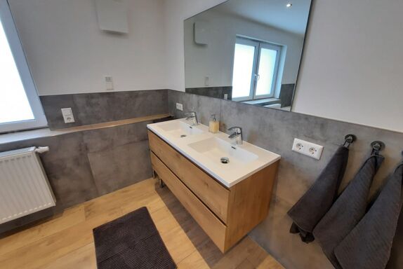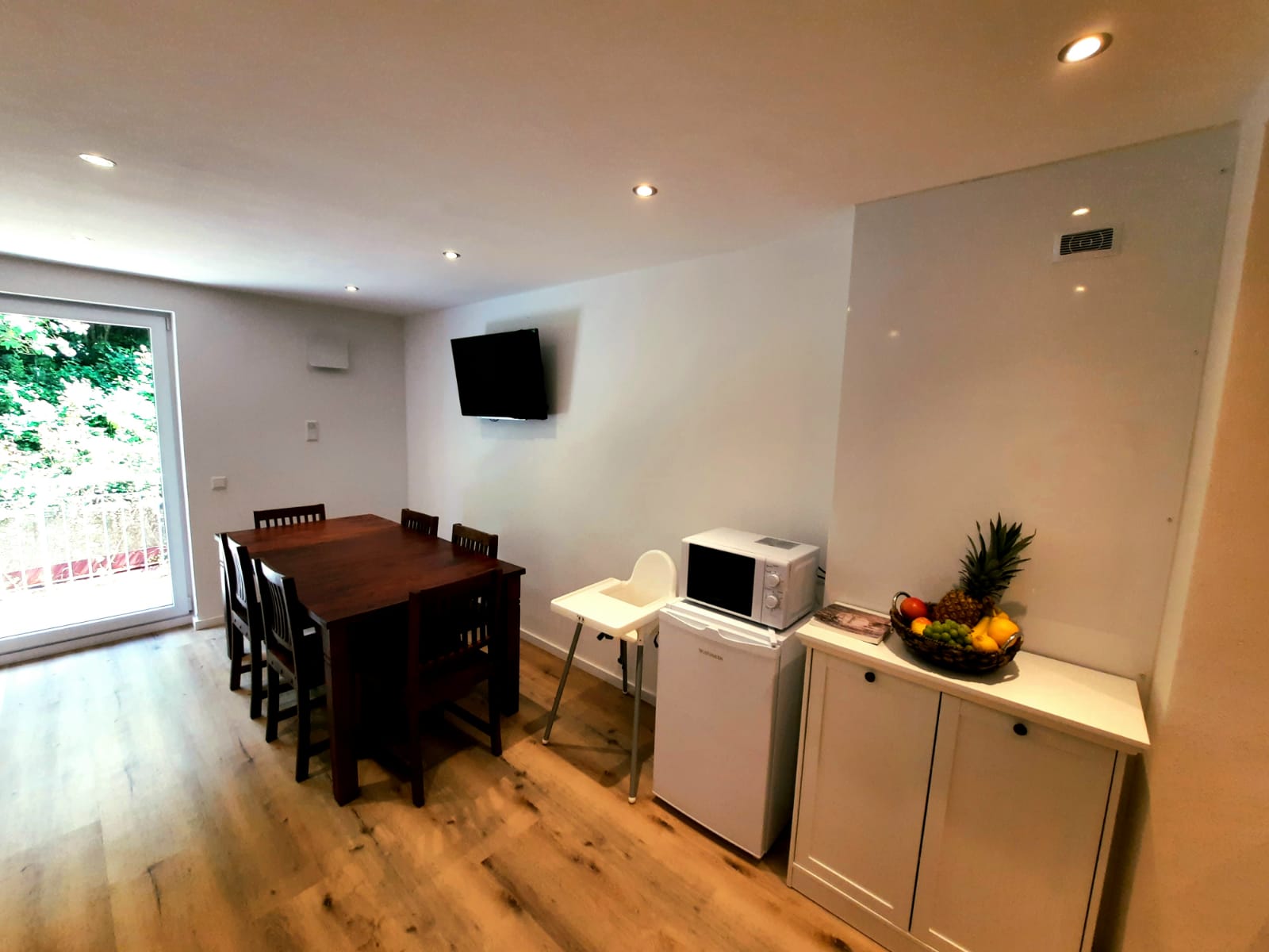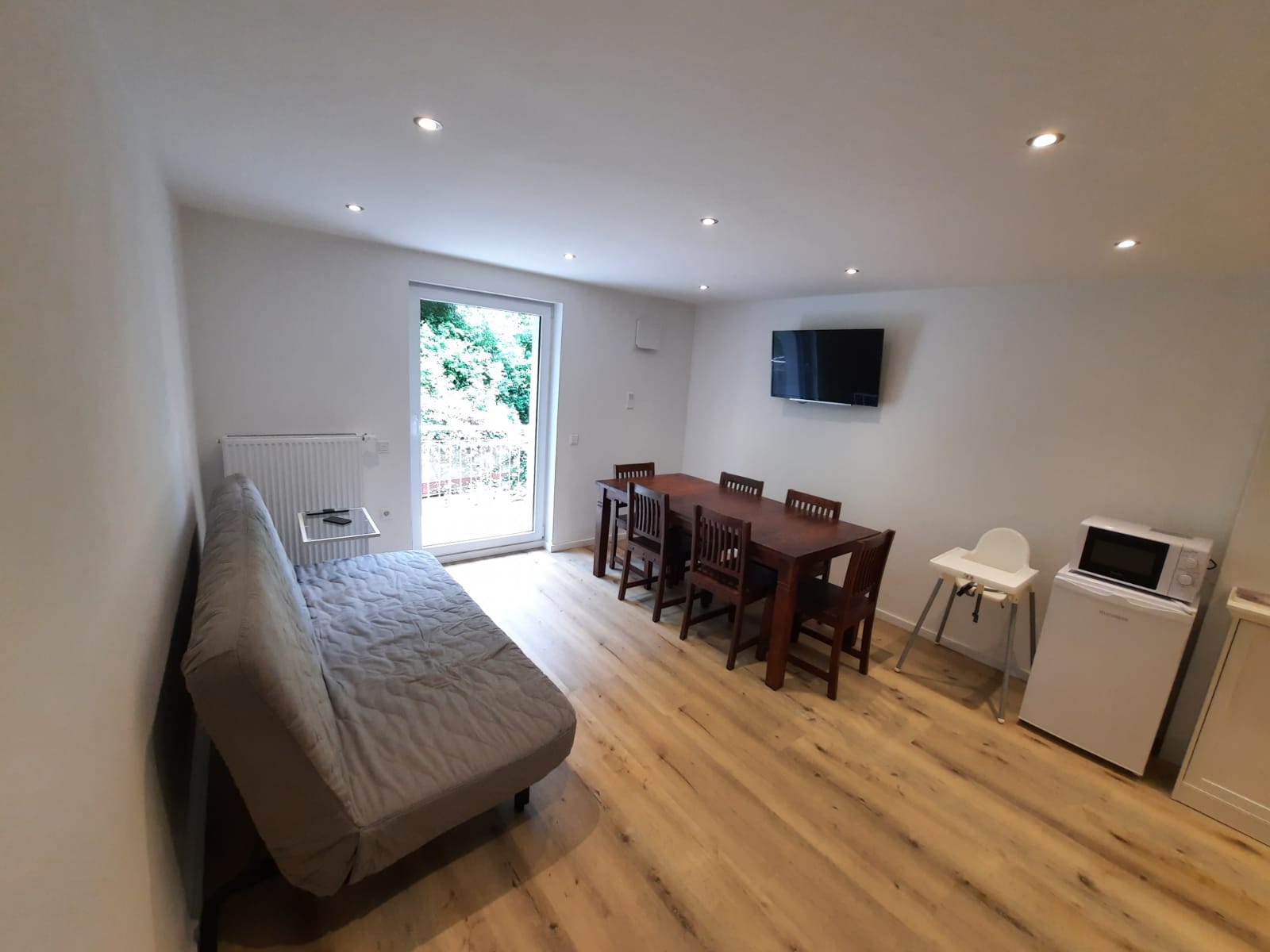 Unsere kernsanierte Ferienwohnung mit 70 m² Wohnfläche bietet Platz für 1-6 Personen. Das gemütliche Wohn-Esszimmer mit Zugang zum Balkon, Esstisch mit 6 Stühlen, Schlafsofa und Sat TV (Smartfernseher mit allen gängigen Streamingapps wie Netflix, YouTube...) lädt zum Verweilen ein. Die offene und komplett ausgestattete Küche mit Geschirrspüler, Kühlschrank inclusive kleinem Gefrierfach, Herd, Backofen, Mikrowelle, Wasserkocher, Kaffeepadmaschine, Toaster und Stabmixer lässt keine Wünsche offen. Die Ferienwohnung verfügt über 2 Schlafzimmer mit je 2 Einzelbetten (Betten zusammenschiebbar, in einem Schlafzimmer befindet sich ebenfalls ein Smart TV). Das geräumige Badezimmer mit modernem Doppelwaschbecken, großem Spiegel, großzügiger Dusche, Badewanne und sichtgeschütztem WC bietet Platz für die ganze Familie. Bitte beachten Sie, dass keine Haustiere erlaubt sind. Das WLAN und eine absperrbare Garage (nur nach vorheriger Anmeldung und Verfügbarkeit) vor dem Haus können Sie kostenfrei Nutzen.