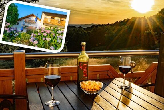 Zur liebevoll eingerichteten ****Ferienwohnung im ersten Obergeschoss gehört ein Balkon zur Alleinnutzung. Genießen Sie von hier aus den wunderschönen Panoramablick.