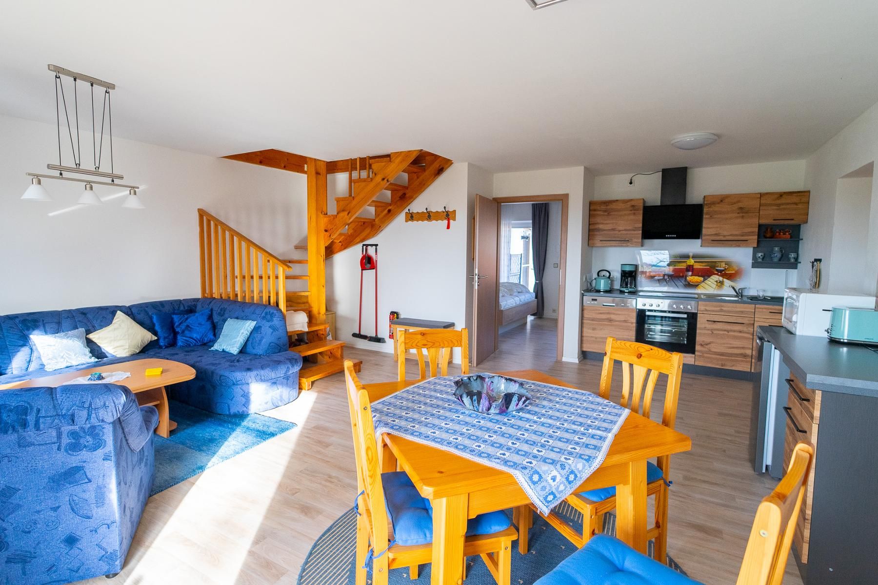Erleben Sie vom Balkon im ersten Obergeschoss aus einen herrlichen Ausblick in die Ferne. Mit etwas Glück und Geduld können Sie wie die faszinierende Tierwelt des Waldes beobachten, ganz ungestört. Auf großzügigen 60 Quadratmetern können Sie sich optimal entspannen und wohlfühlen.