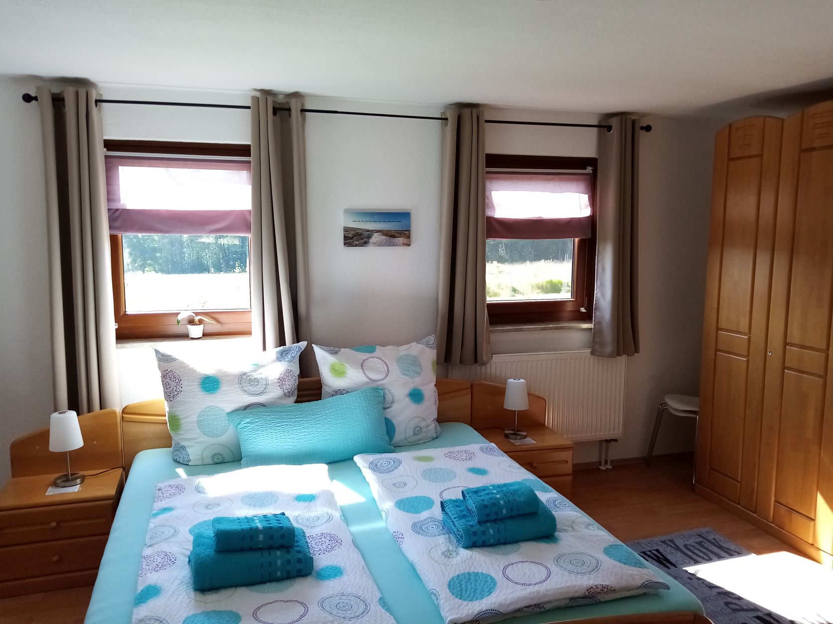 ✔ Schlafzimmer mit Doppelbett, Kommode, Schrank, Radiowecker
