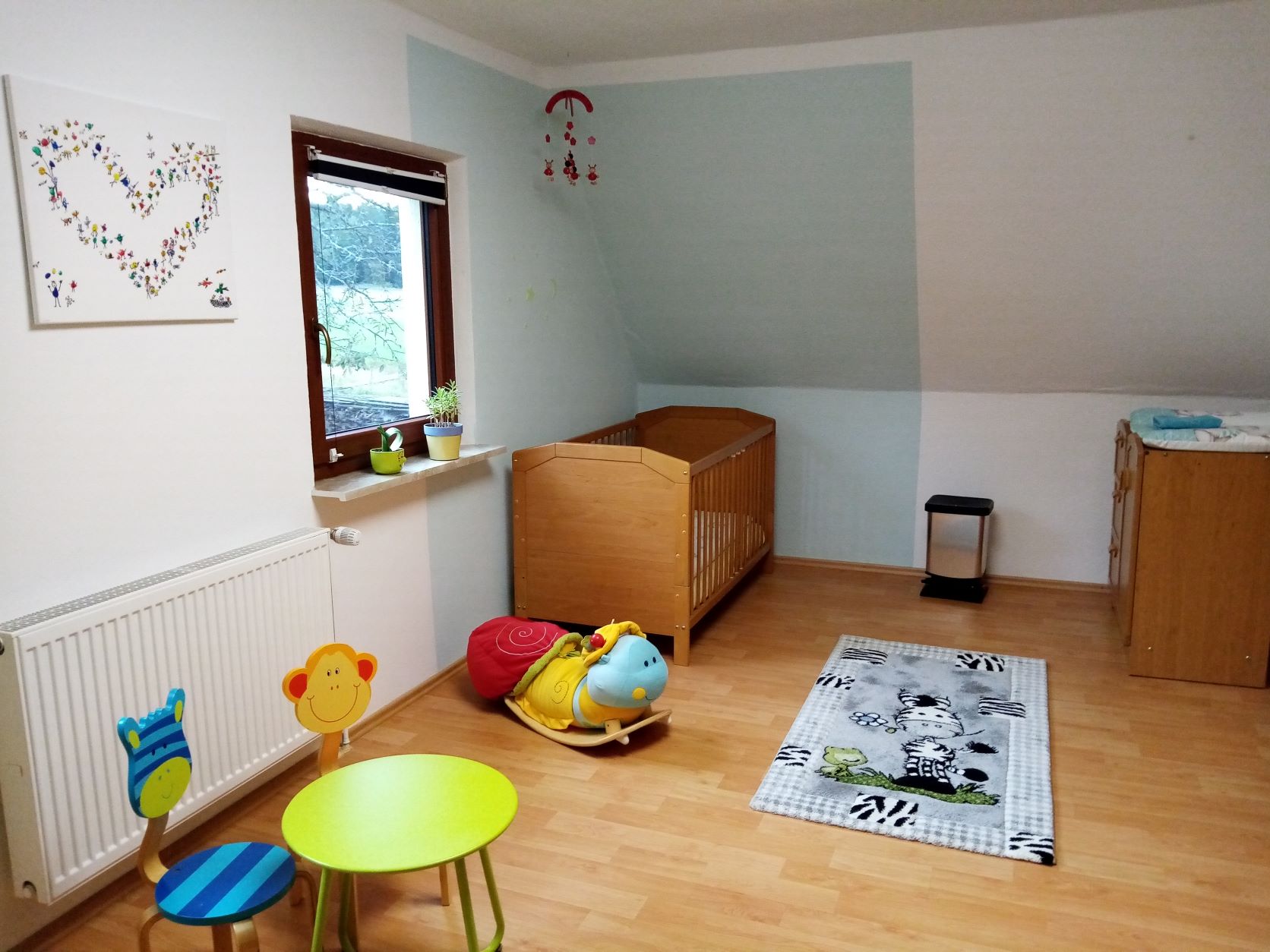 ✔ Kinderzimmer mit Einzelbett, Babybett, Kleiderschrank, Sofa, Wickelkommode, Kindertisch und zwei Kinderstühlen