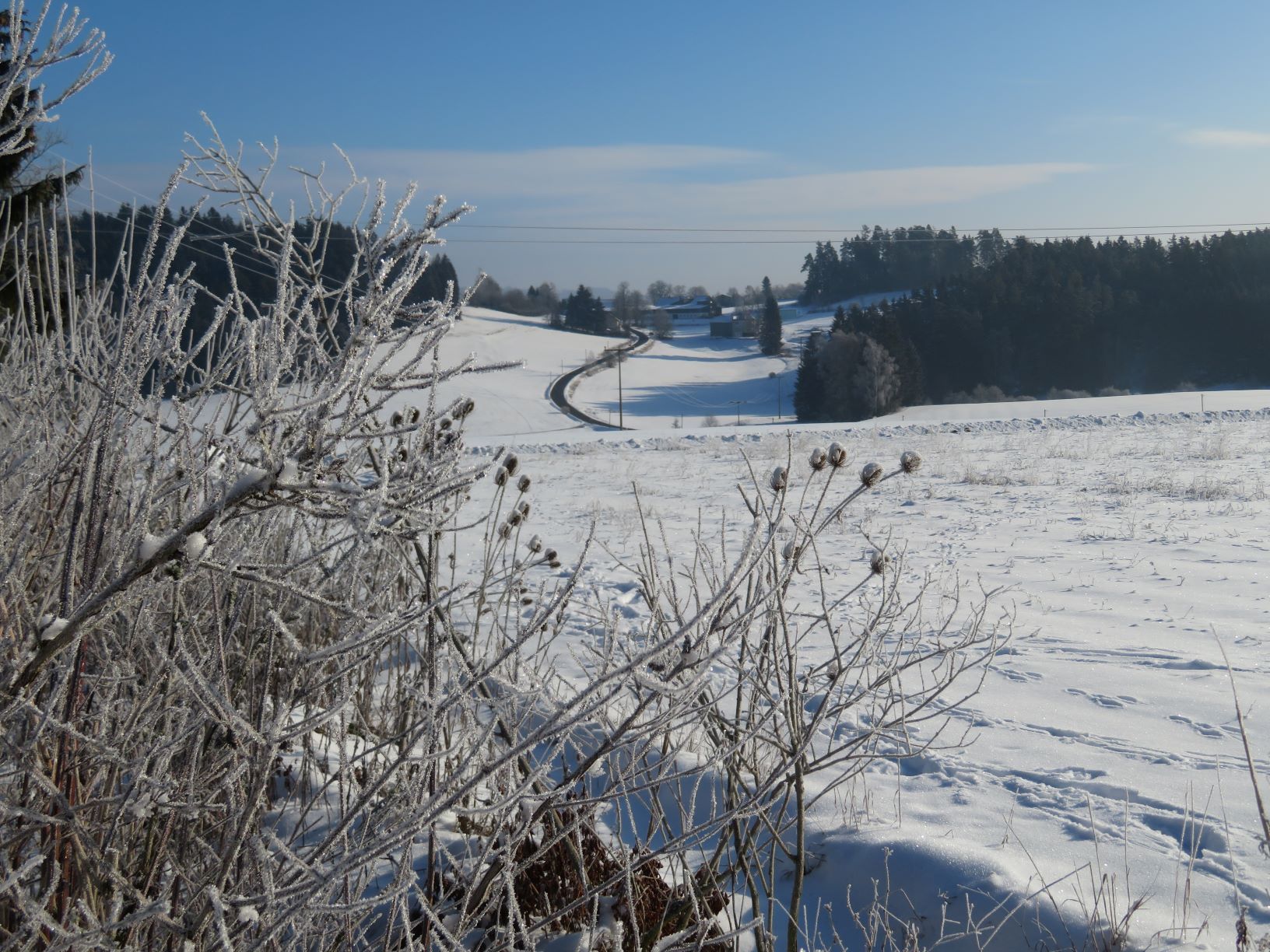 Feldern und Wald umgeben. In unmittelbarer Nähe befinden sich die Naturschutzgebiete „Brutteich und