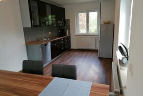 Die Küche und das Wohnzimmer sind direkt verbunden und komplett ausgestattet. Vom Wohnzimmer aus können Sie direkt auf den Balkon.