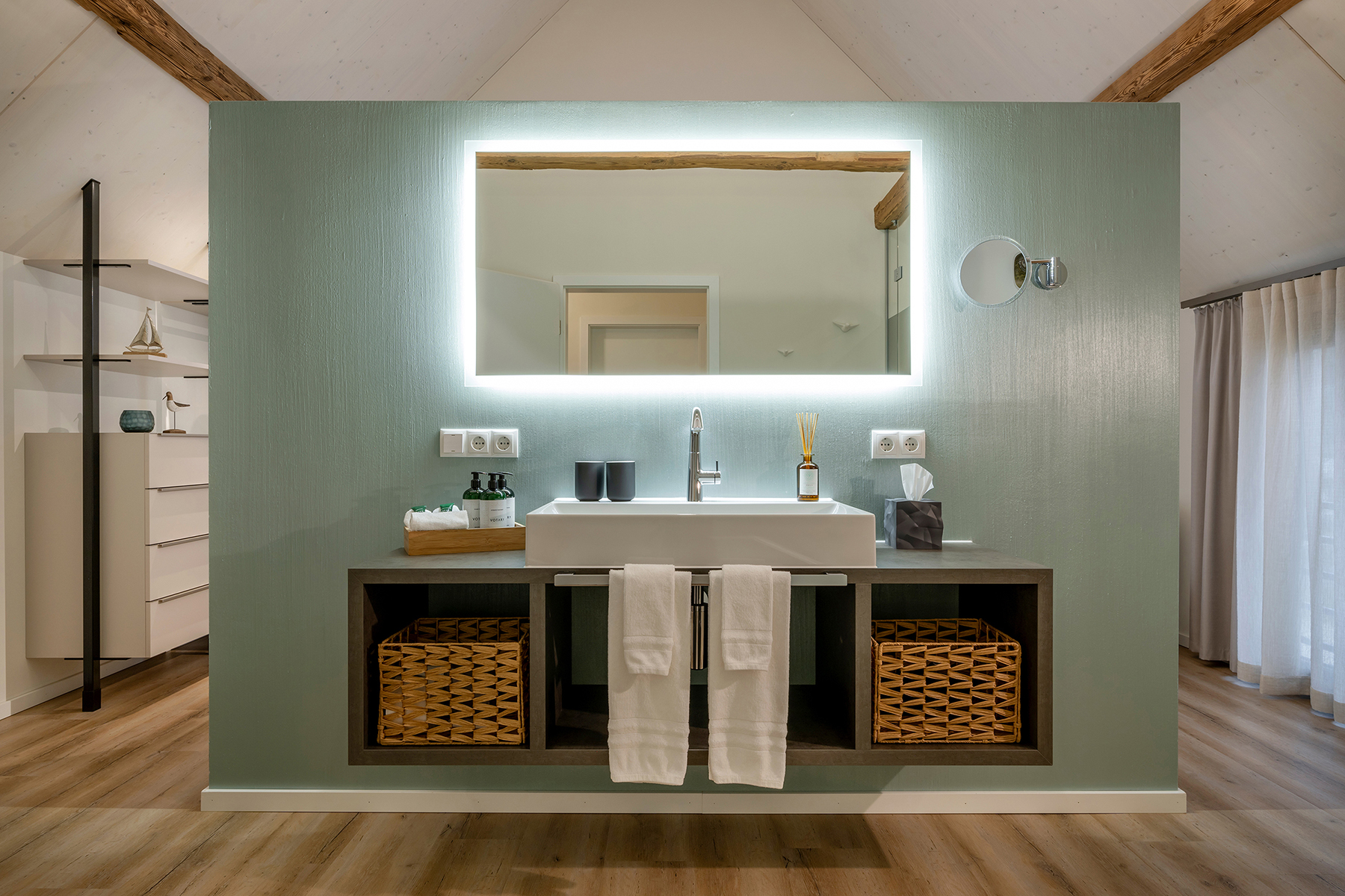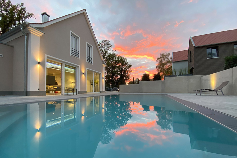 Mit Swimming-Pool, eigener Sauna, eigenem Badezuber (auch Hottub genannt – eine rustikale Form von Whirlpool), Kamin, viel Raum und Privatsphäre verfügen Sie über ein Hide-Away mit extra Wohlfühlambiente in einem modernen, nachhaltigen Holzbau.