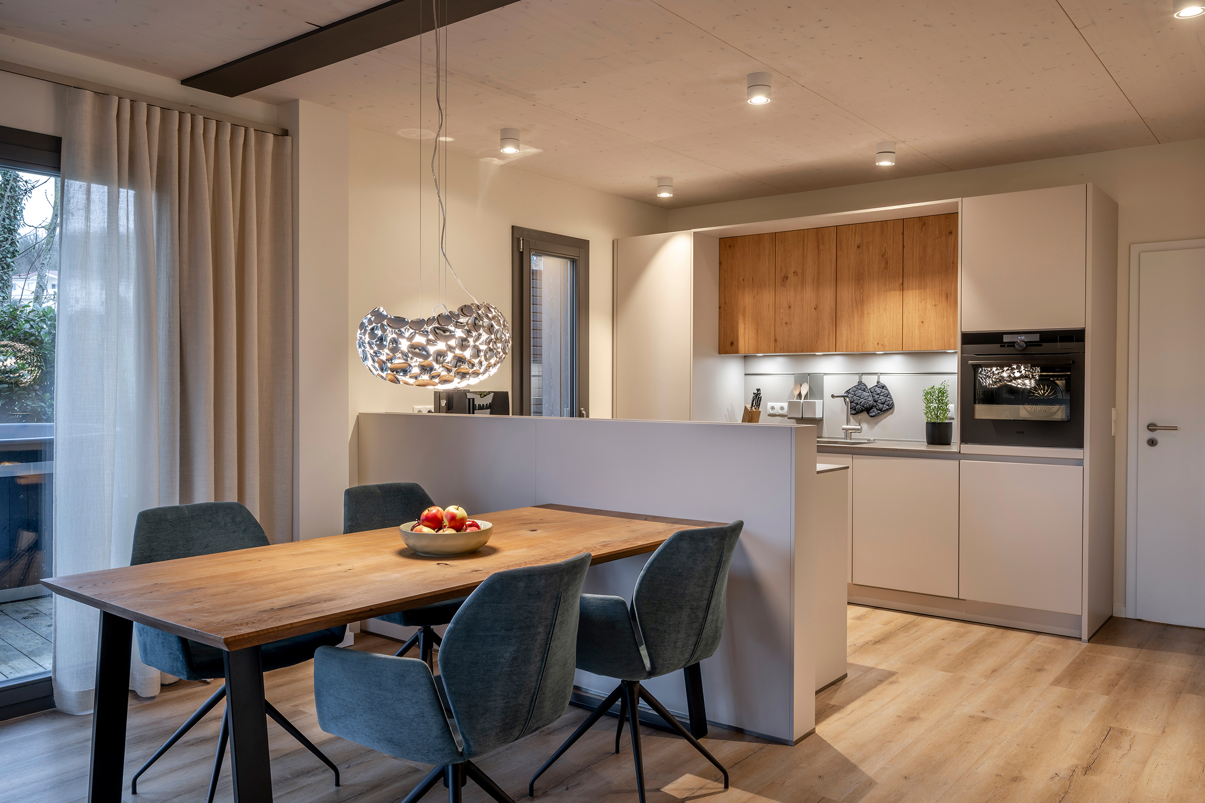 - Luxus-Küchen von Schüller-Küchen und next125 mit Keramik-Arbeitsplatten, modernen Muldenlüftern von BORA, Dampfbackofen von AEG und Kaffeemaschine von Jura