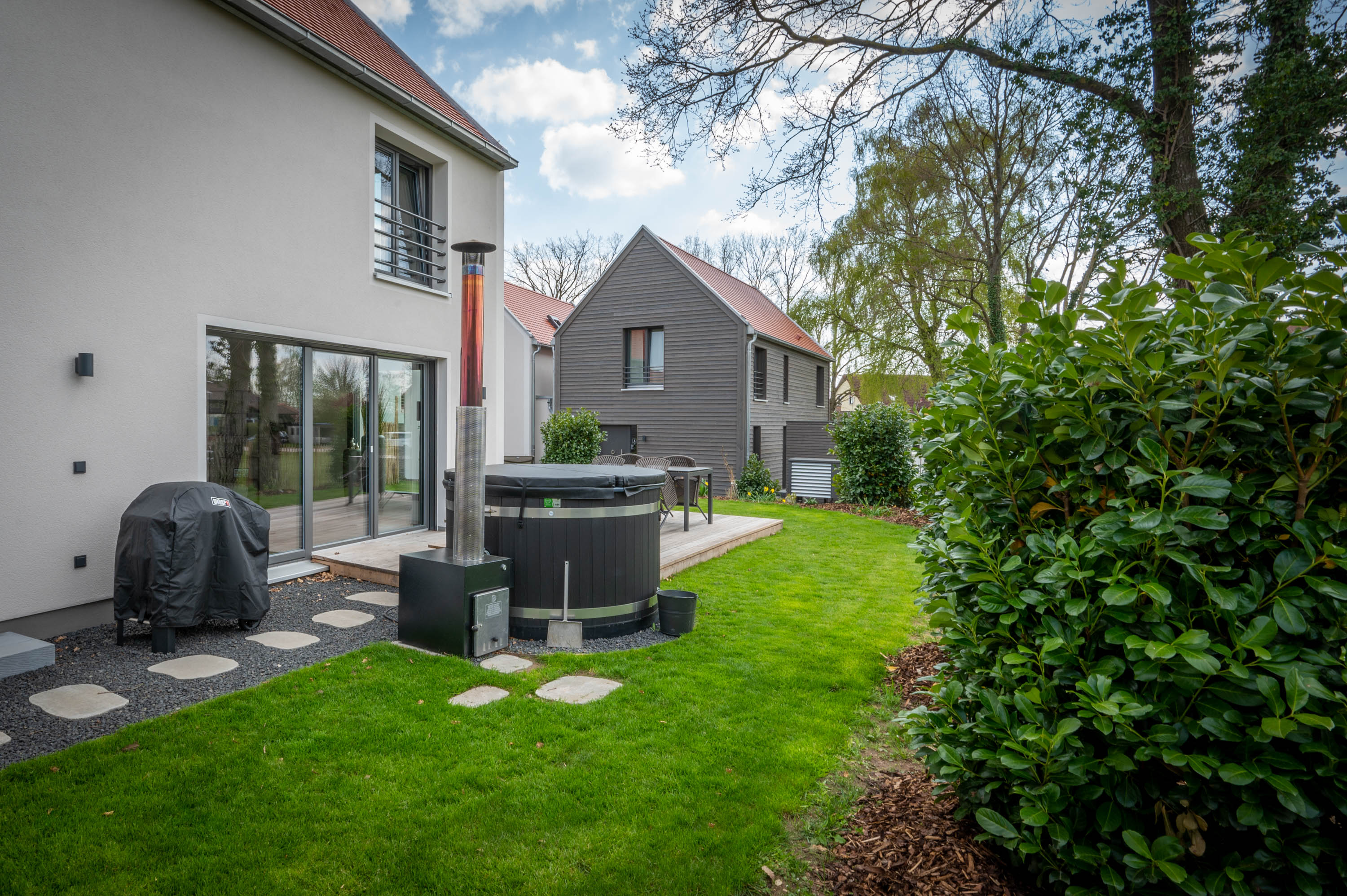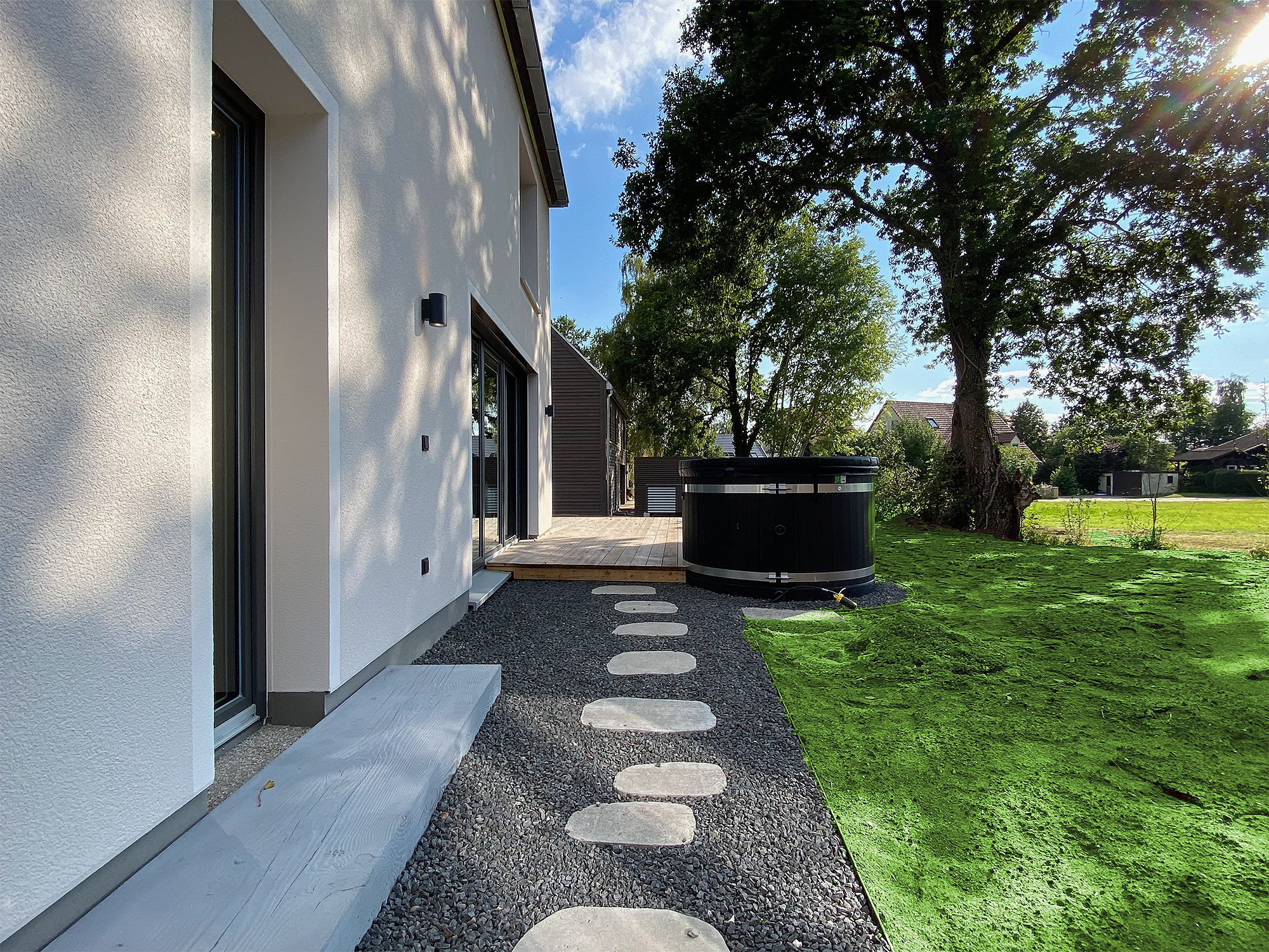 - Großer, privater Außenbereich, teilweise mit Saunagarten