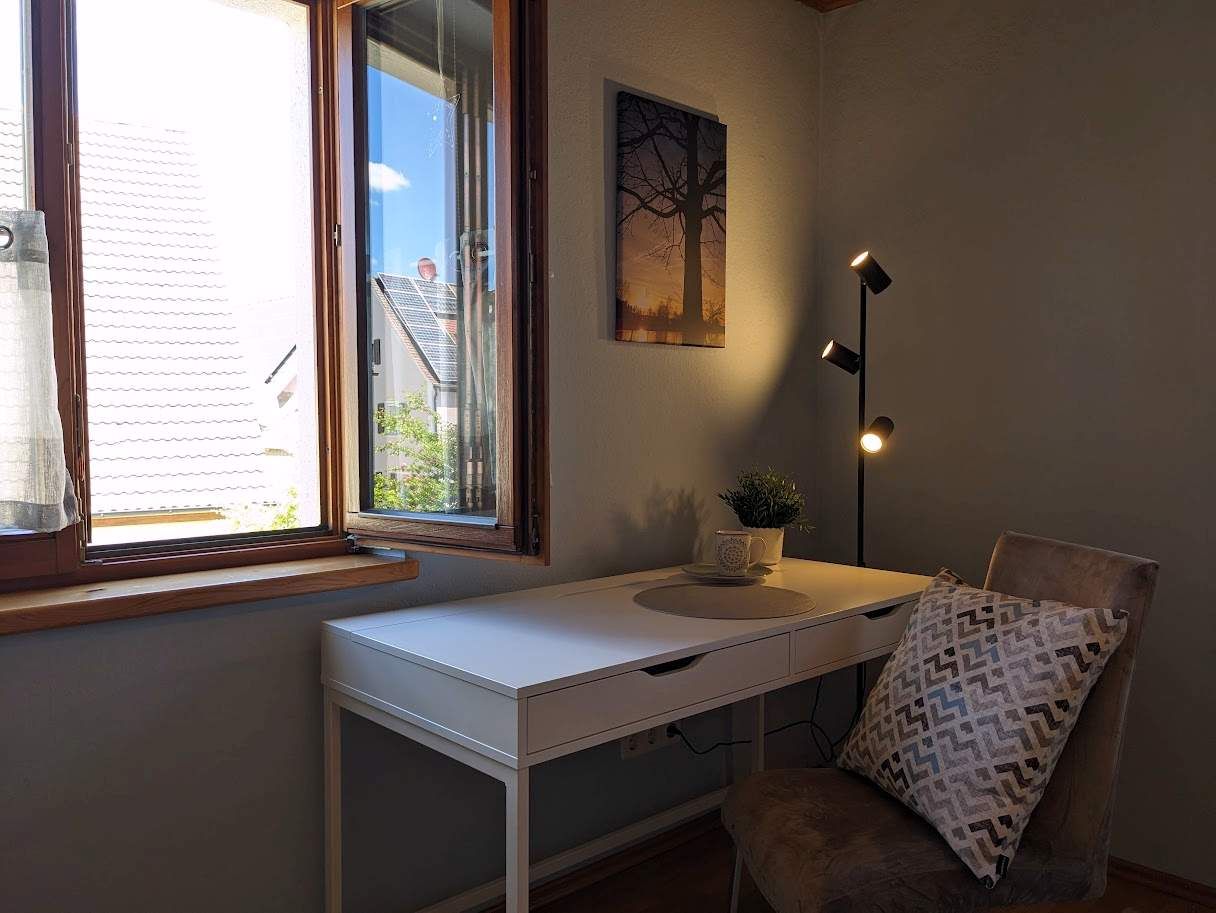 • Gemütliches Wohnzimmer mit Flachbildschirm für einen entspannten Fernsehabend sowie einem Schreibtisch