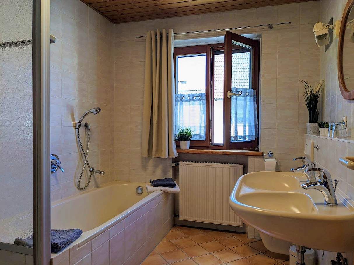 • Freundliches Badezimmer mit Dusche/WC und Badewanne