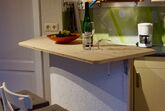 Durch die Eingangstür gelangt man direkt in das kombinierte Wohn-/Schlafzimmer mit Küchenzeile (mit Ausgang zum Balkon) und in das helle, freundliche Duschbad/ WC. Über eine Wendeltreppe gelangt man in den Spitzboden mit einer Schlafkoje. (1,80m x 2,00m).