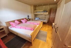 Wohnbereich (Sat-TV).Ein Schlafzimmer mit Doppelbett und Stockbetten( Nur das untere für Erwachsene nutzbar) , und ein weiters