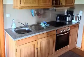 Wasserkocher, Toaster, Kaffeemaschine u. Backofen.Gebrauchsartikel wie Kaffeefilter, Toilettenpapier... müssen mitgebracht werden.